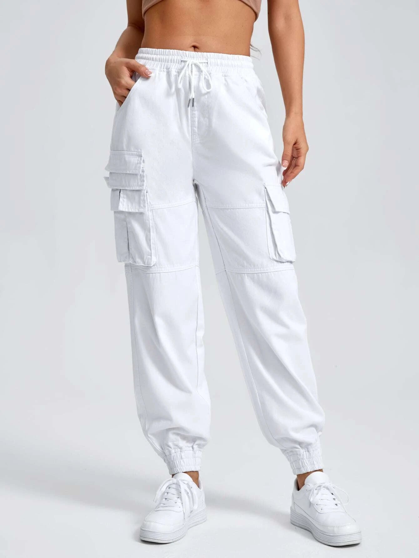 Flap Pocket Drawstring Hem Cargo Pants