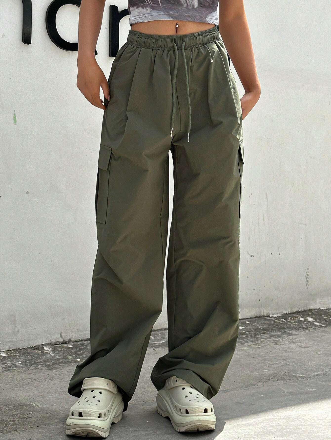 Flap Pocket Drawstring Cropped Cargo Pants