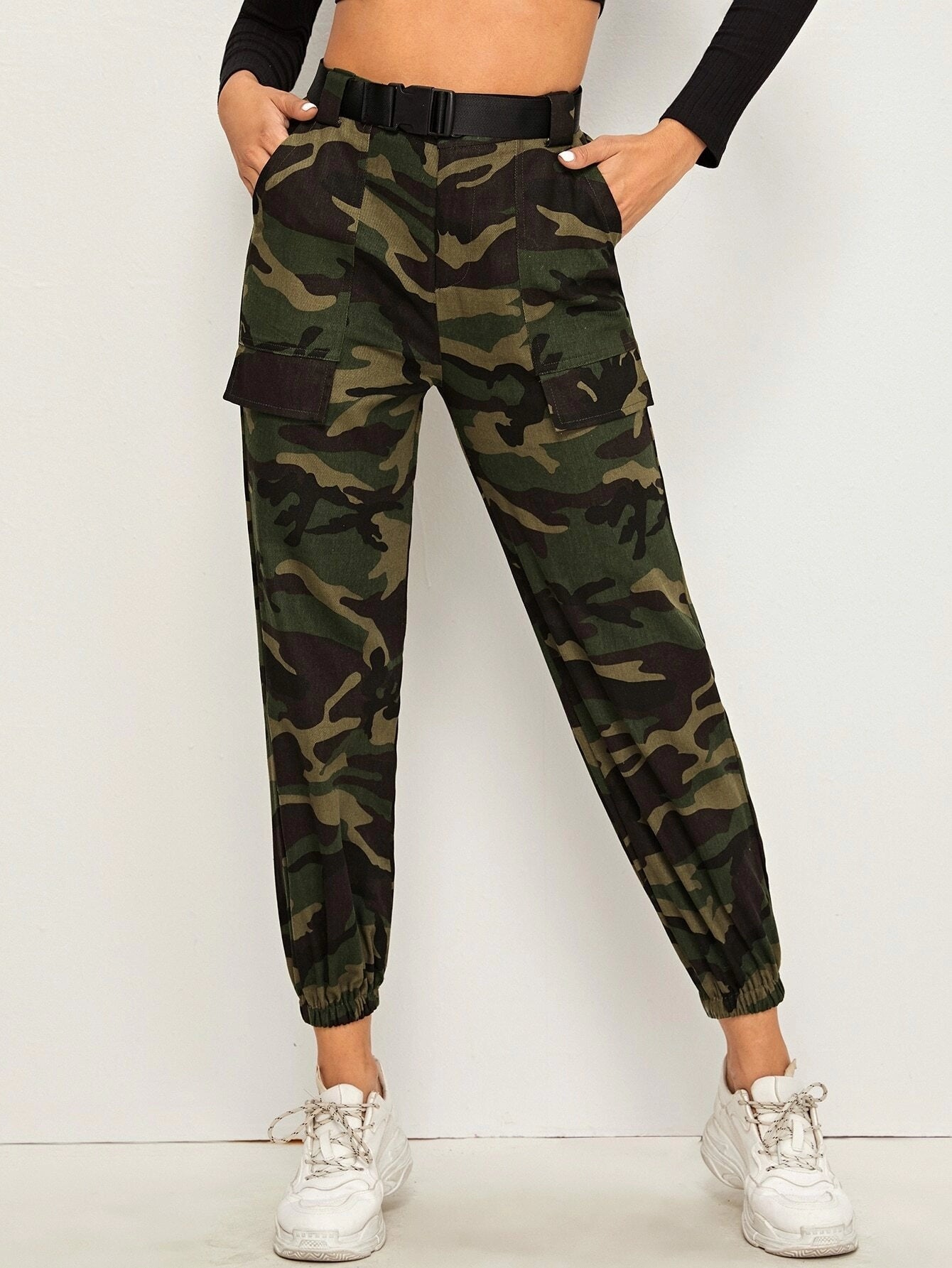 Buckle Belted Slant Pockets Cargo Pant