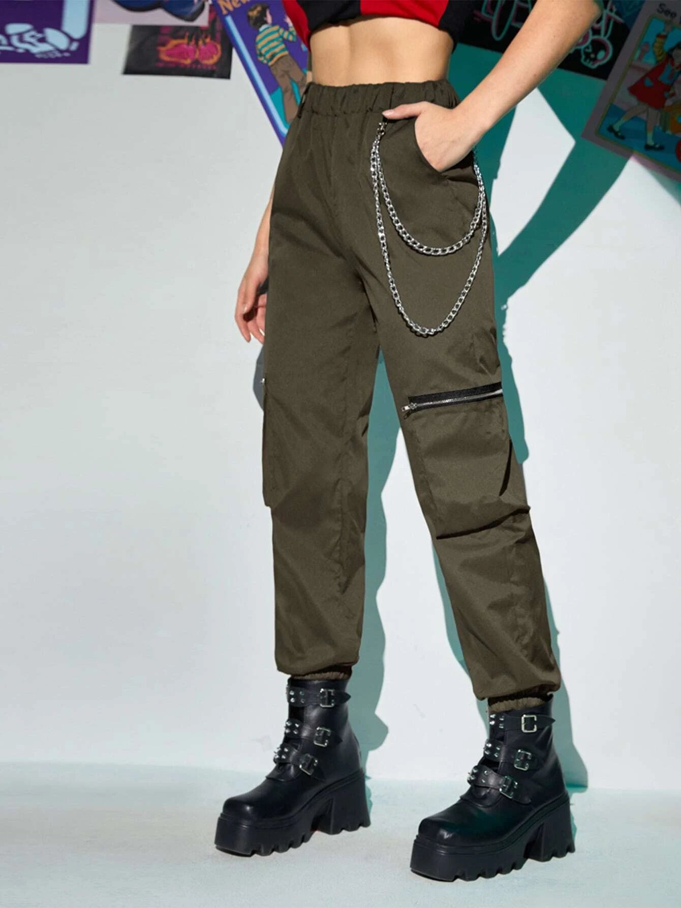 Zipper Chain Cargo Pants