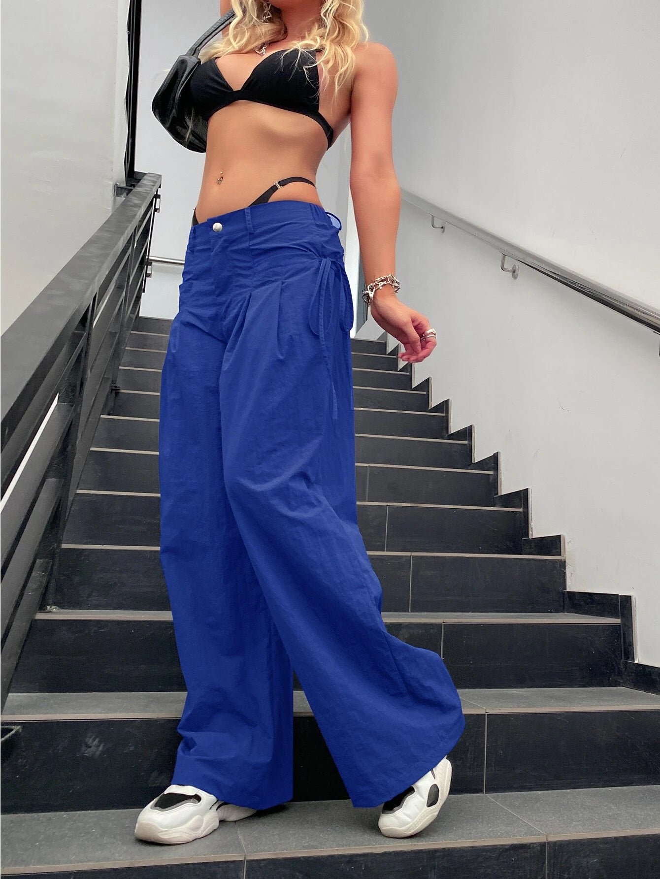 Tie Side Parachute Wide Leg Cargo Pants