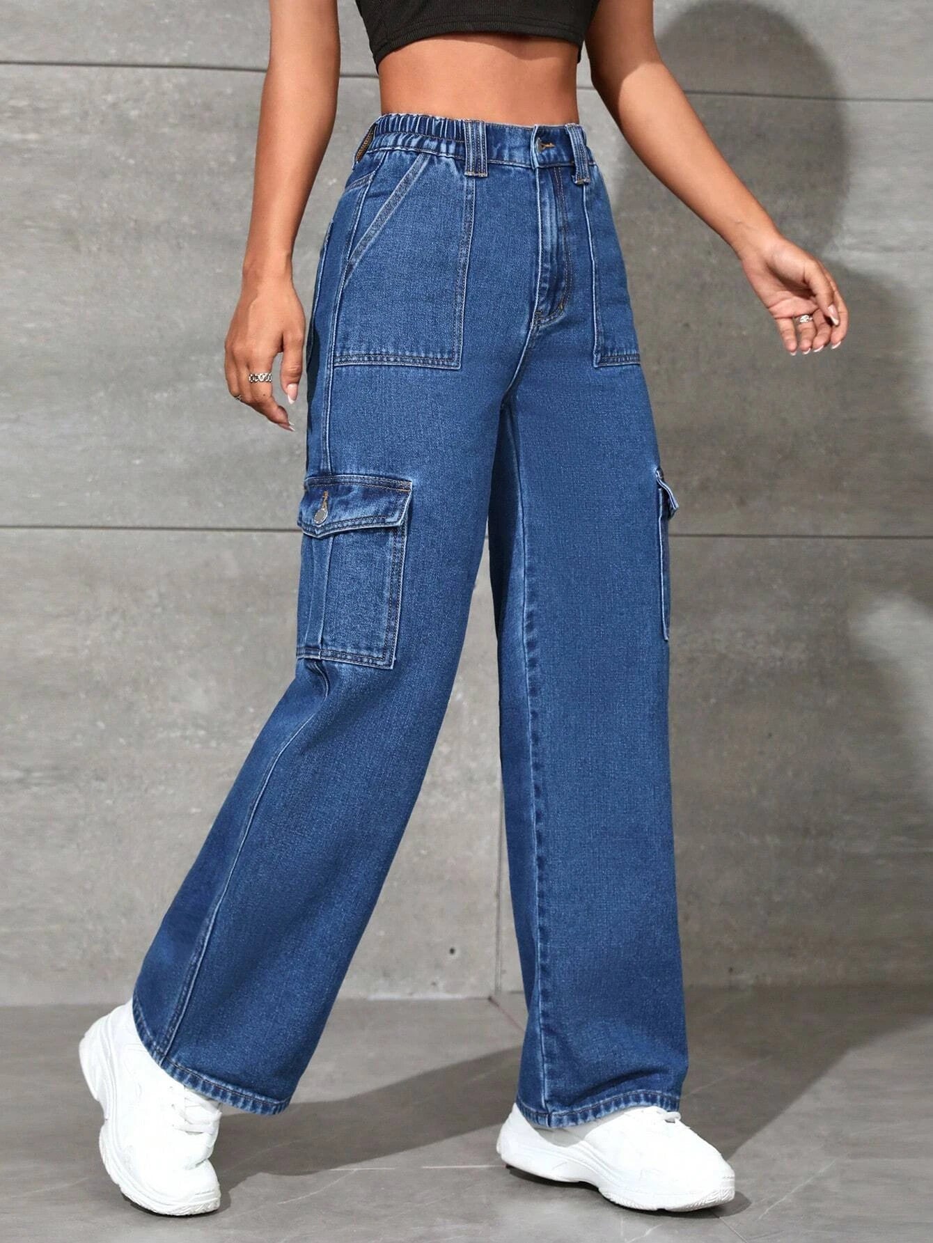 Stitched Cargo Jeans With Flap Pockets