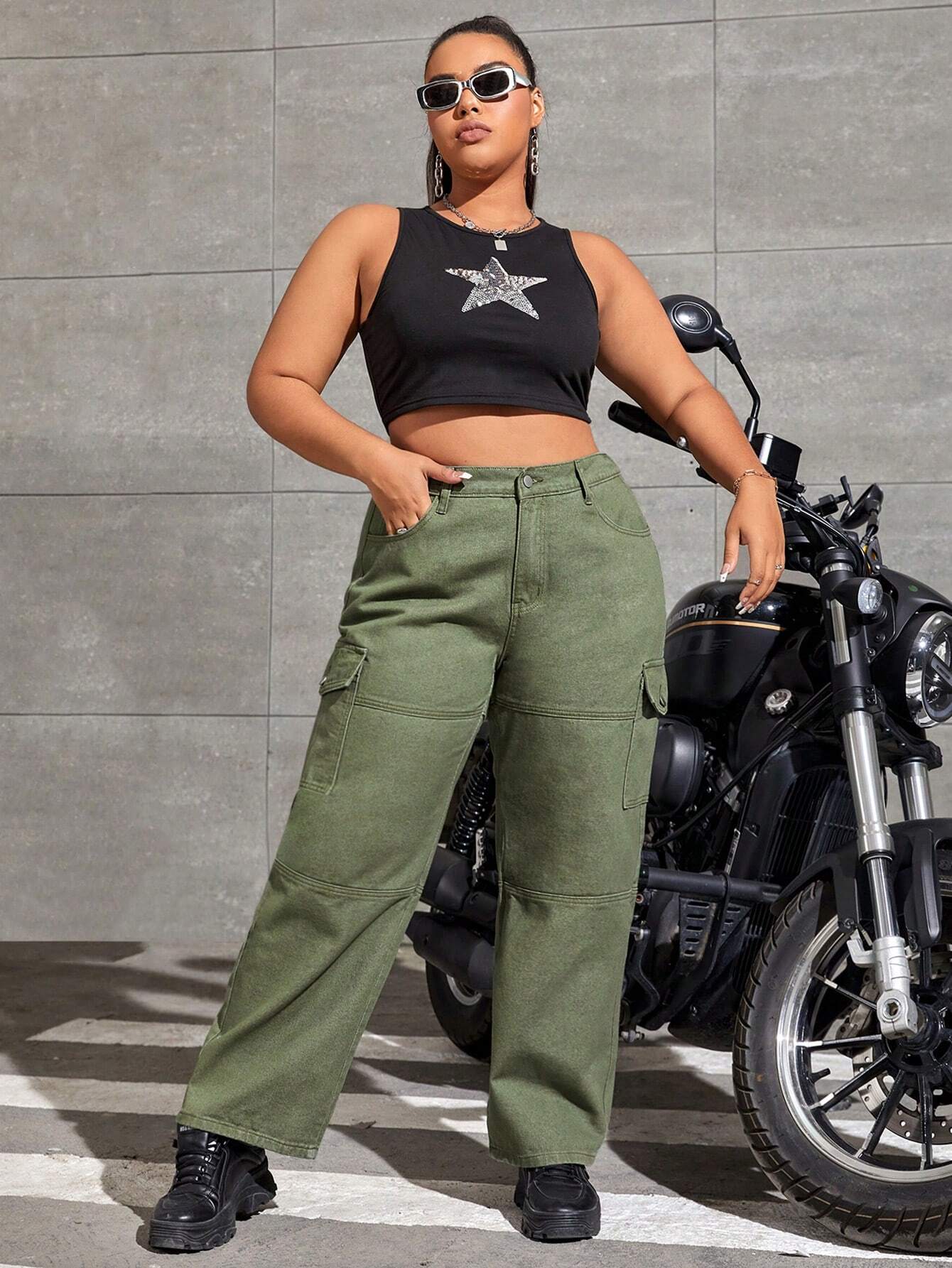 High Waist Straight Leg Cargo Pants