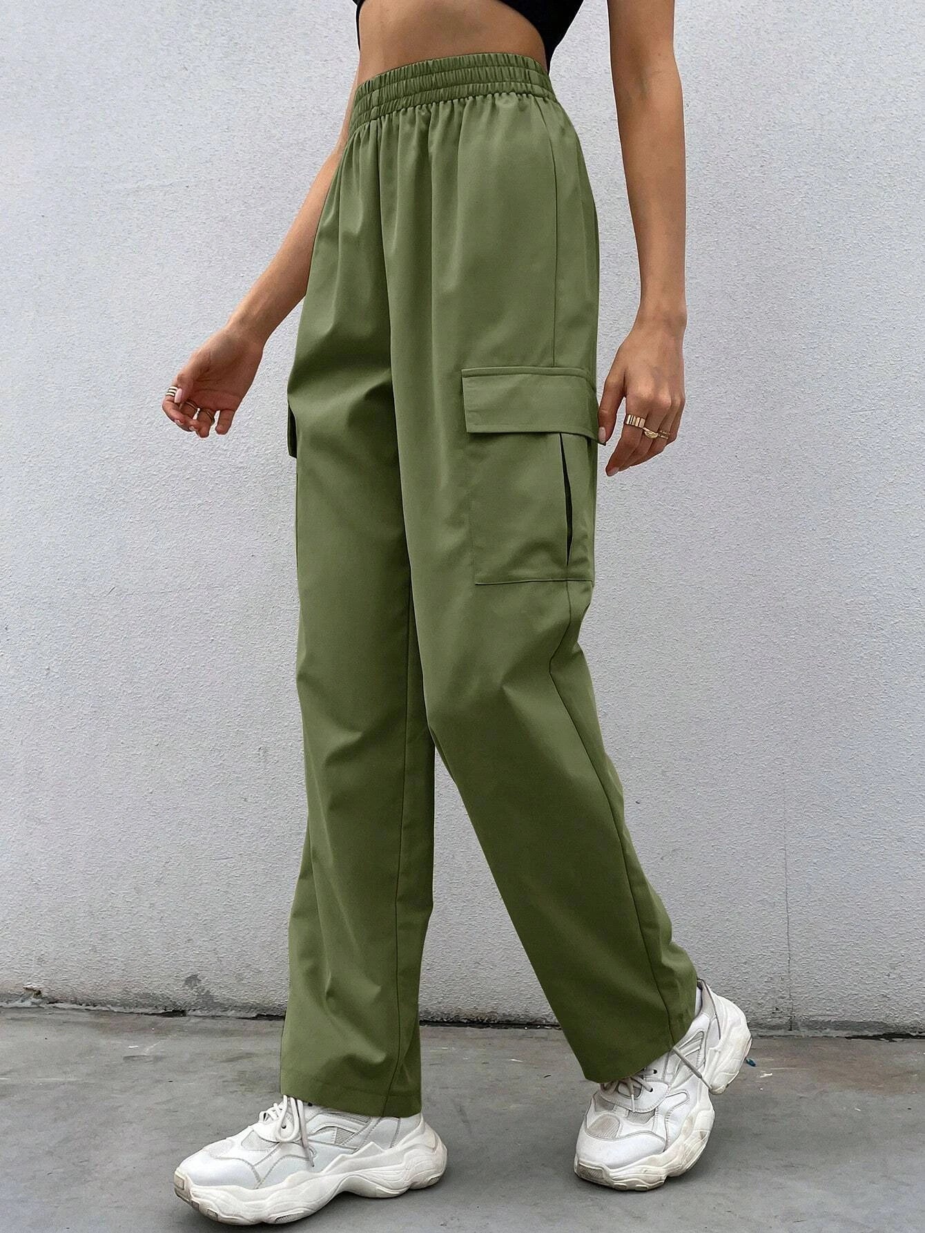 Trendy Solid Flap Side Pocket Cargo Pants