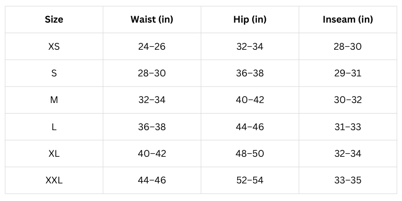Refer to our detailed size chart above. Measure your waist and hips, then compare to our measurements. The stretch fabric is forgiving, but we recommend your usual size for the best fit.