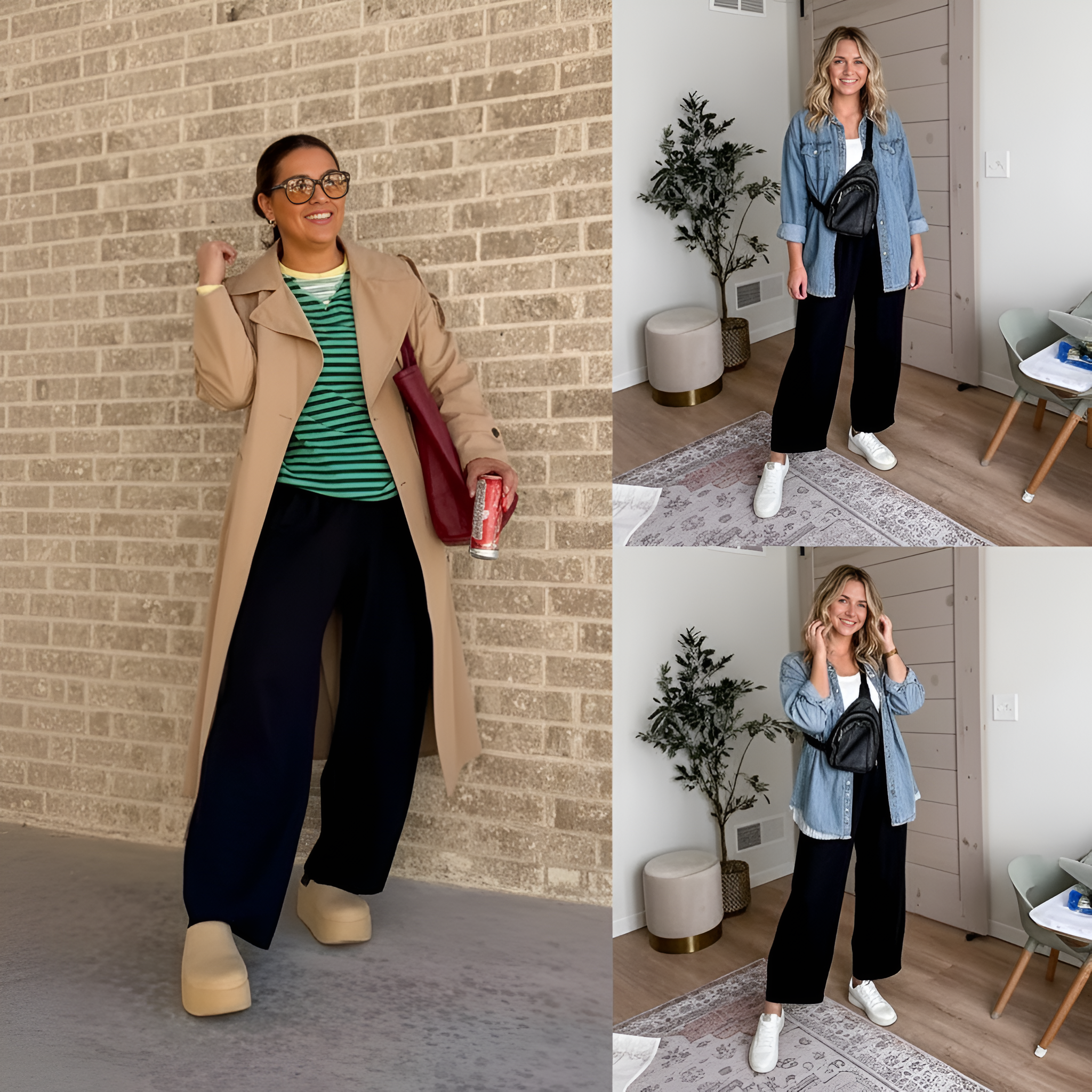 Wide leg works for petite frames when the length is right — the hem needs to reach the top of the foot for the silhouette to elongate rather than cut the leg. At 5'2" with flat shoes this typically means hemming 4–6cm off the bottom. With a 5–7cm heel the same pants work without alteration. The other essential: a fitted or cropped top tucked in. Wearing a long or oversized top with wide leg pants shortens the torso and makes a petite frame look boxier.