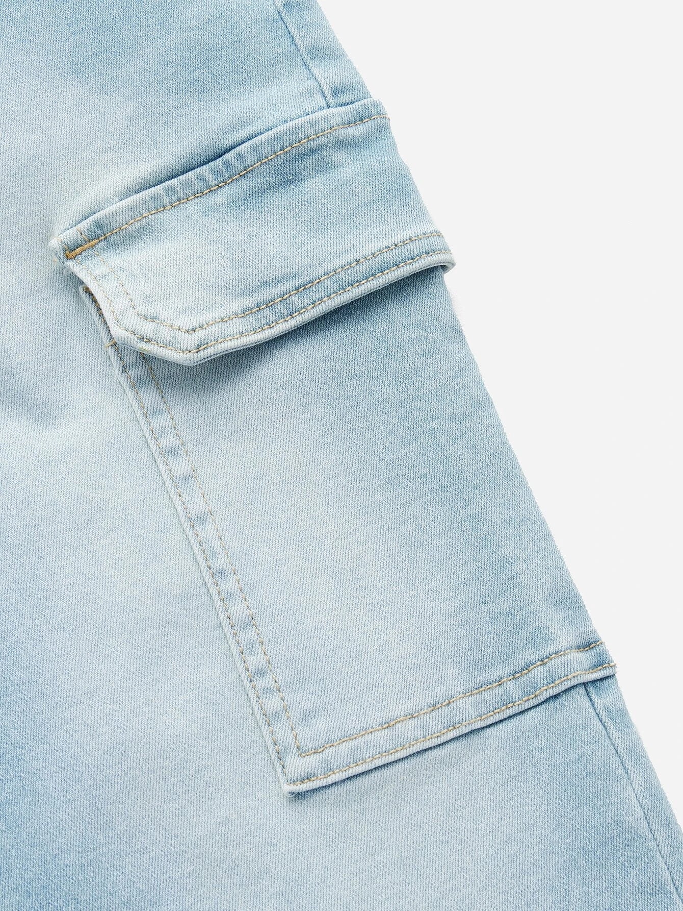 Hop into the ultimate casual look with our Belted Cargo Jeans! Featuring a zipper fly and plenty of pockets, these blue denim cargo pants give you the perfect blend of style and practicality, plus an adjustable belt to cinch it all together. So get ready to hit the streets in comfort and style.