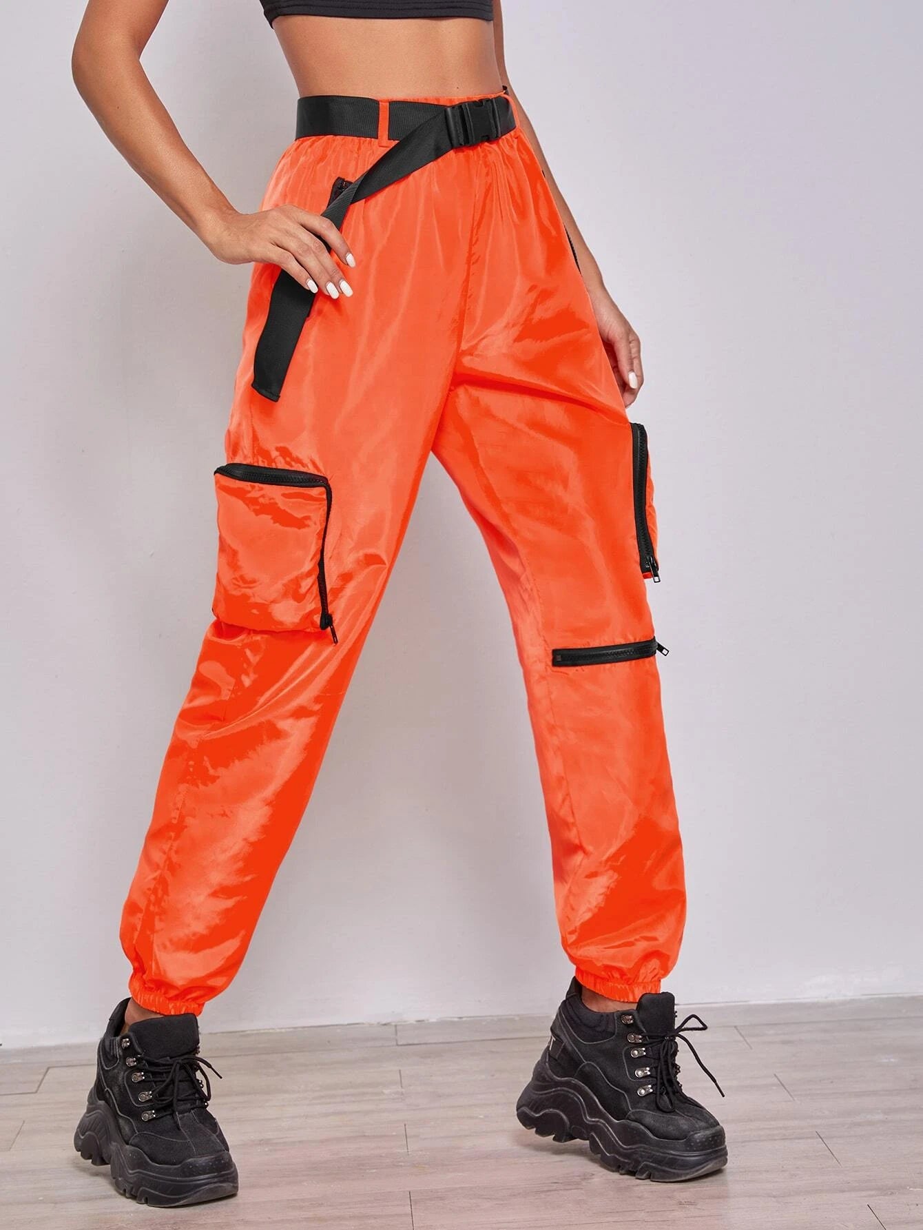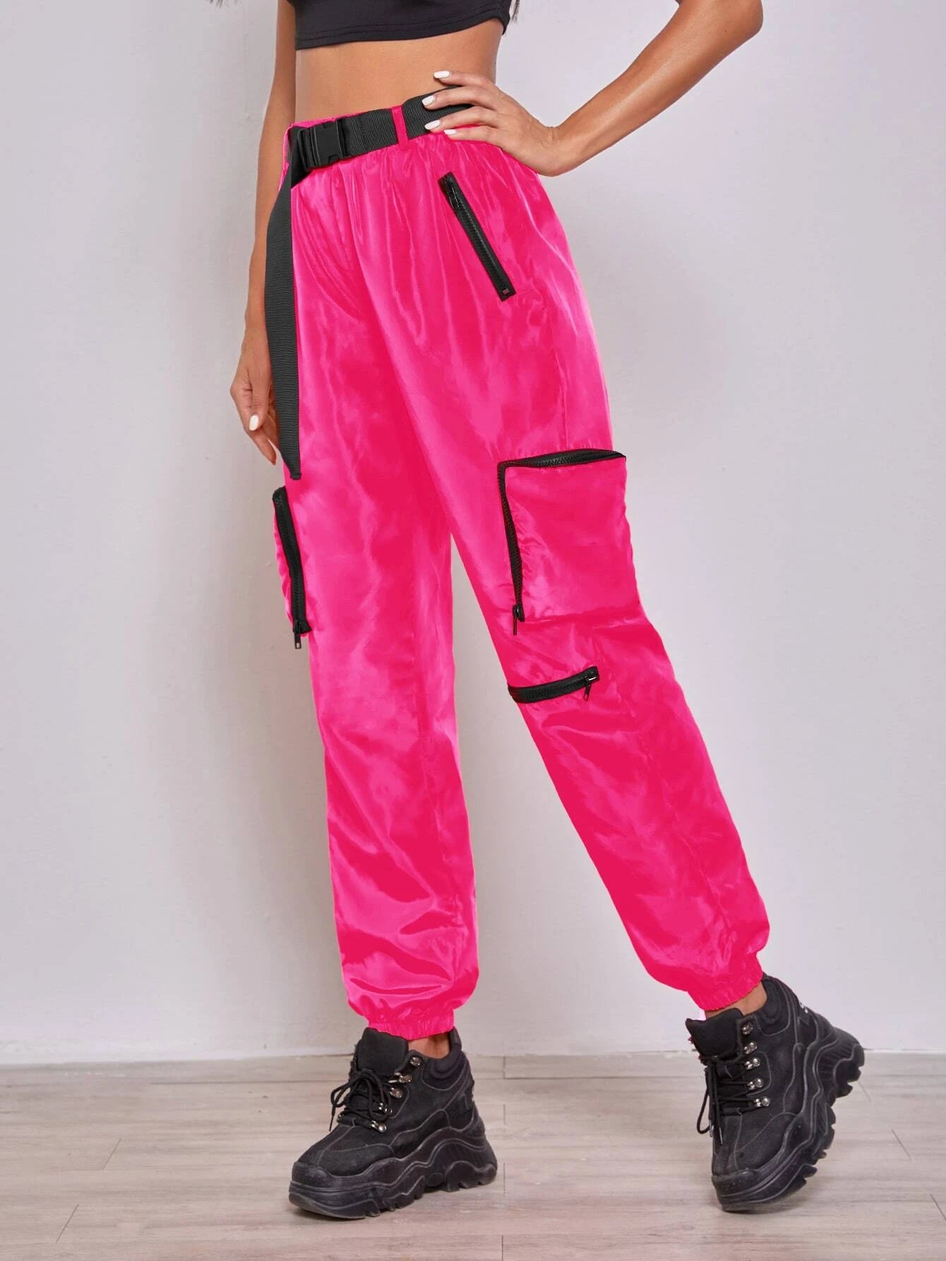 Unleash your style potential with our Buckle Belted Wind Joggers. These cargo pants are the ultimate blend of fashion and comfort, featuring a high waist and a regular fit. The non-stretch fabric ensures durability, while the elastic waist offers a customizable fit.