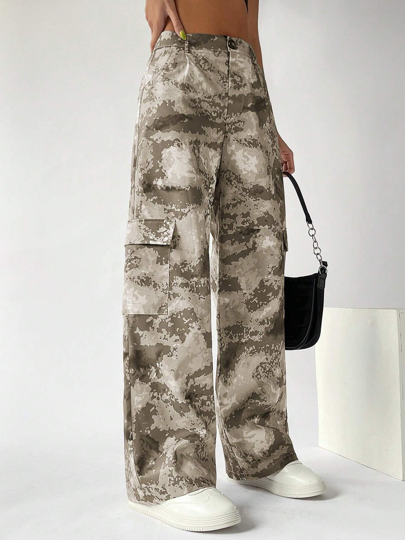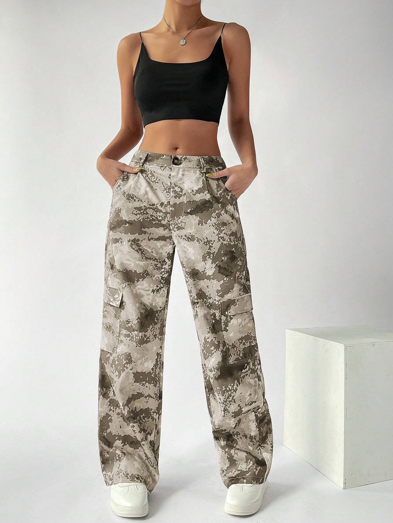 Make a bold fashion statement with our Camo Button Flap Pocket Cargo Pants. Featuring a trendy camouflage print, these pants are perfect for those who want to stand out from the crowd. The button flap pockets on the front not only add a stylish touch but also provide convenient storage for your essentials.