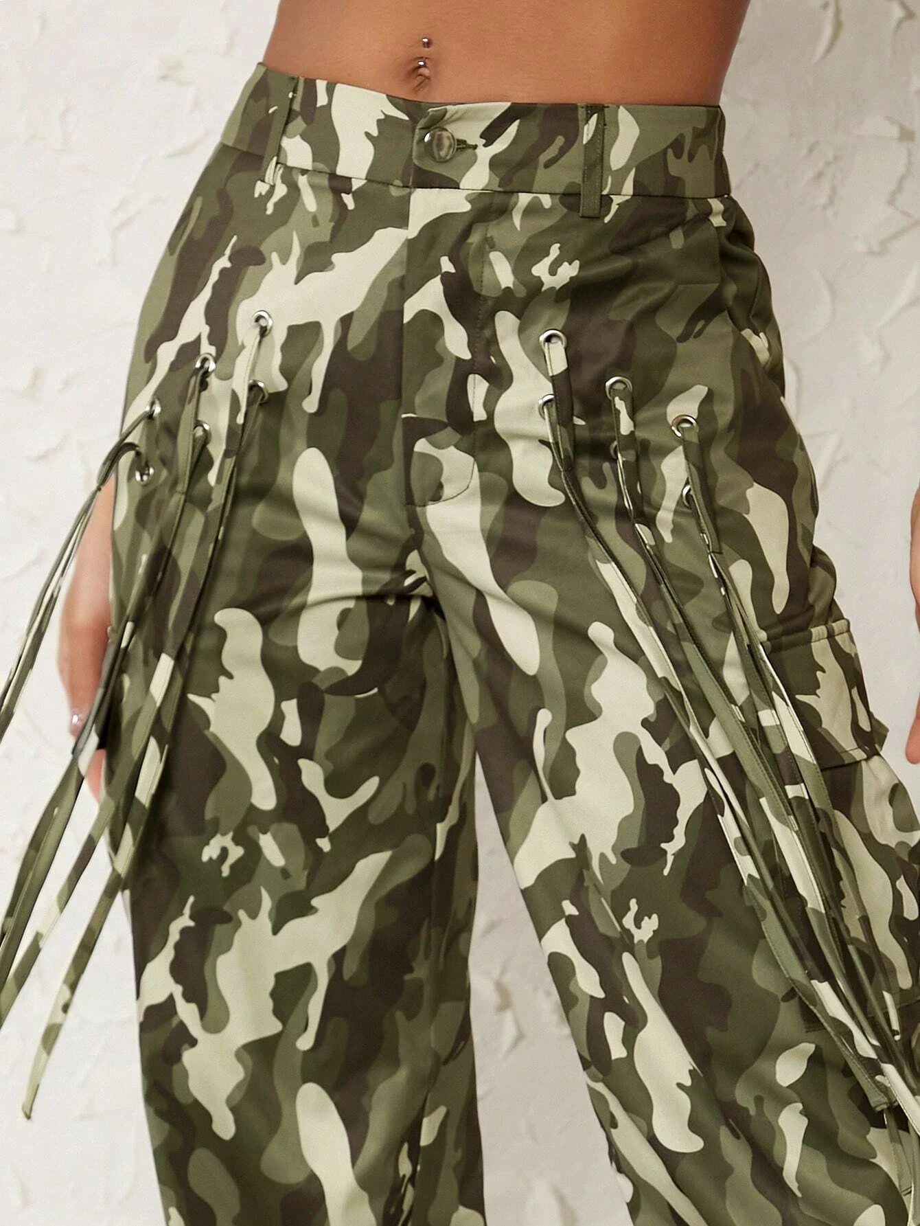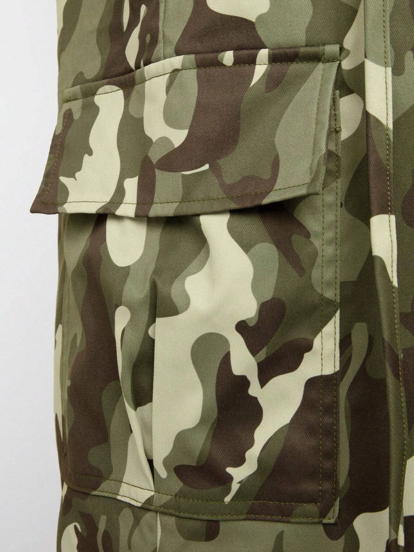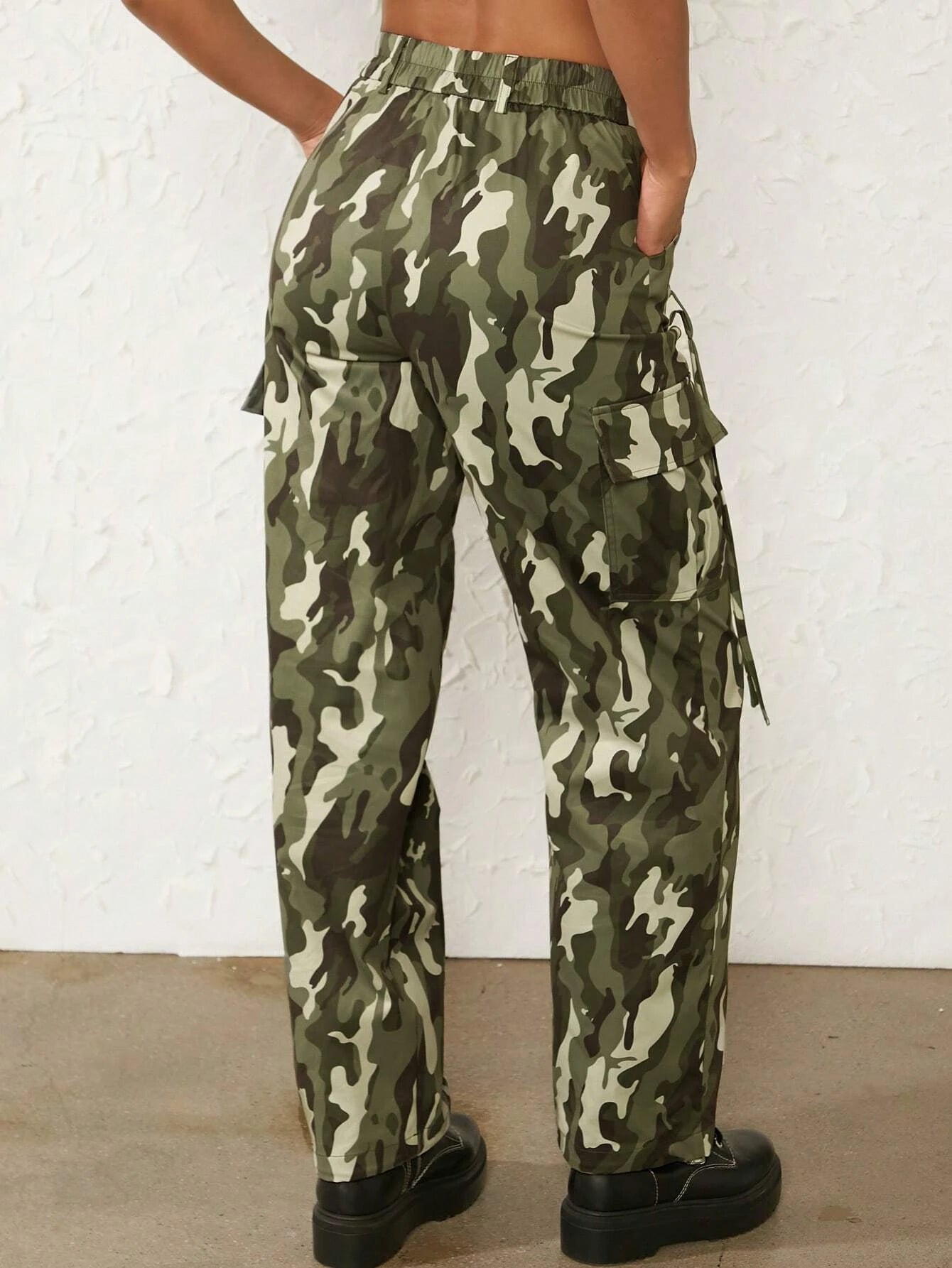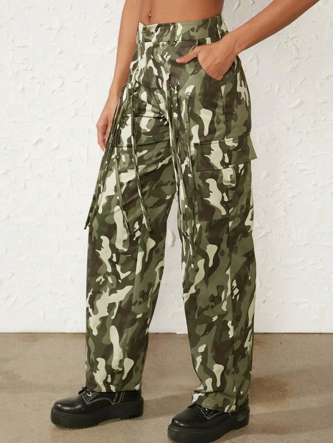 Discover the perfect blend of style and utility with our Camo Flap Pocket Side Cargo Pants. The on-trend camo pattern brings a contemporary twist to your wardrobe, while the regular fit ensures a comfortable and flattering look. Crafted from high-quality woven fabric, these pants offer durability and long-lasting performance.