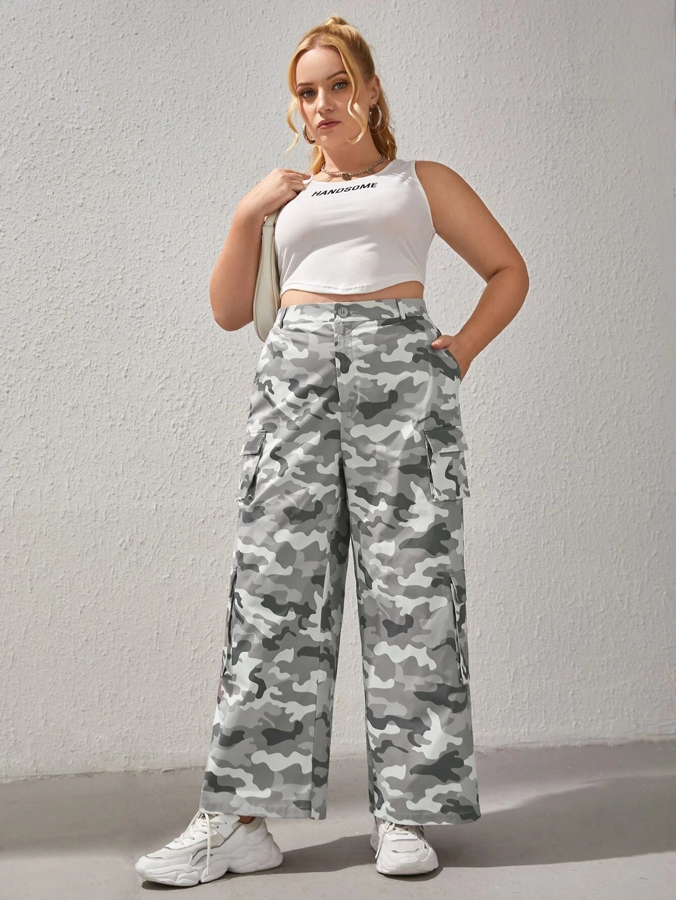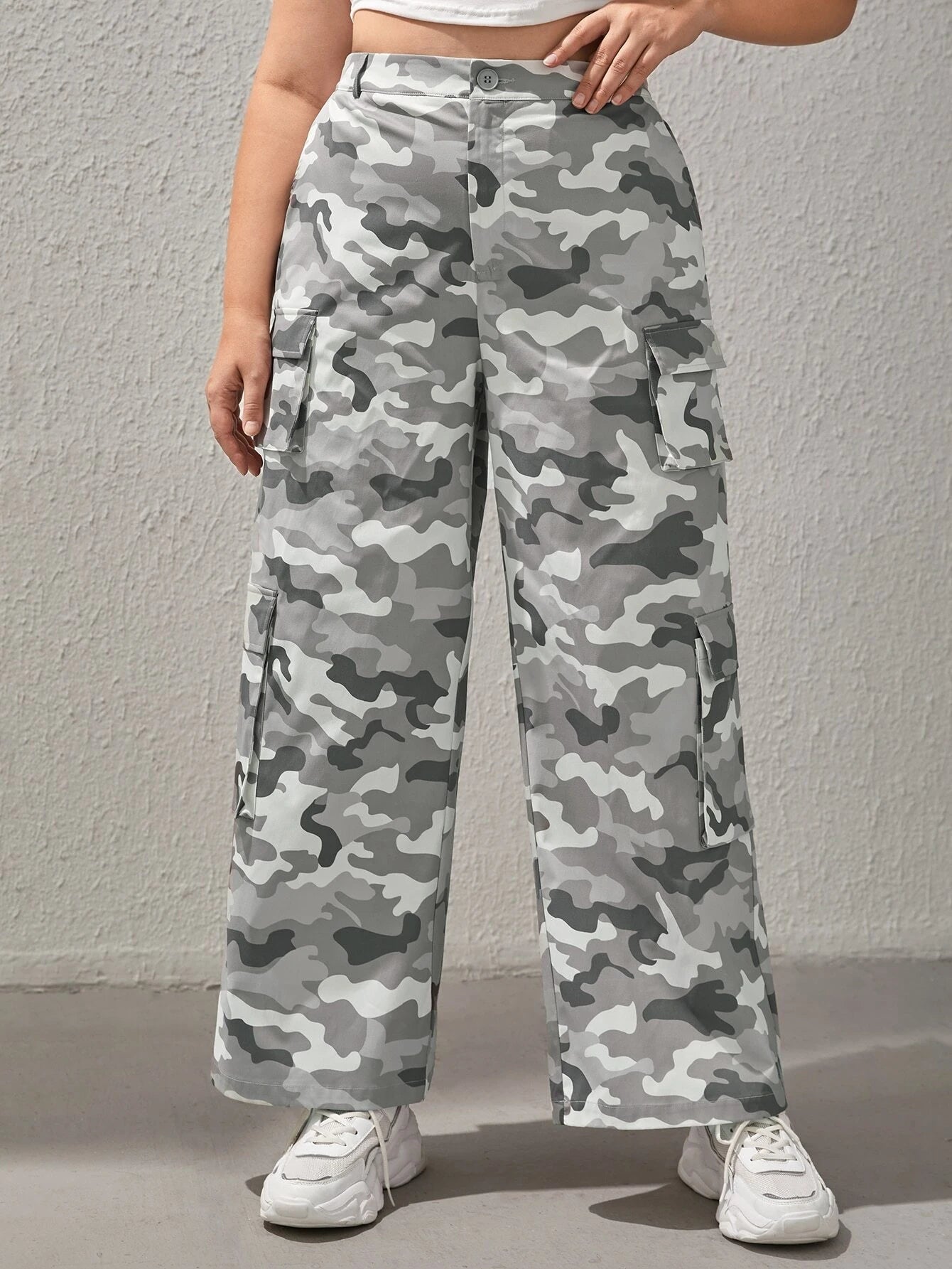 Stay both comfy and trendy with our Camo Printed Cargo Pants! Crafted with woven fabric and featuring a zipper fly, these casual pants come in an eye-catching white and grey camo pattern and boast plenty of pockets for storing your stuff. Let the world know you mean business in these comfy camo pants.