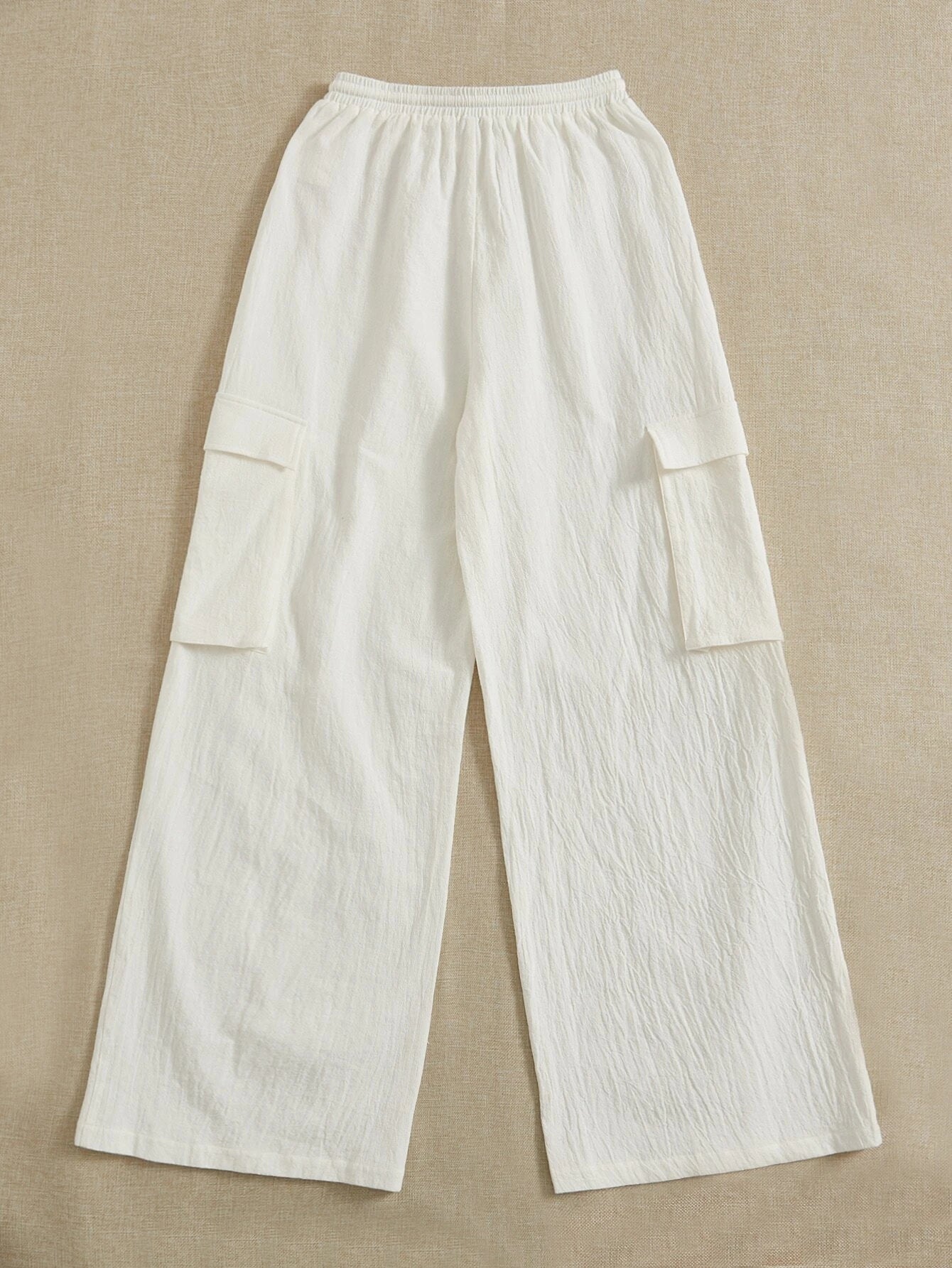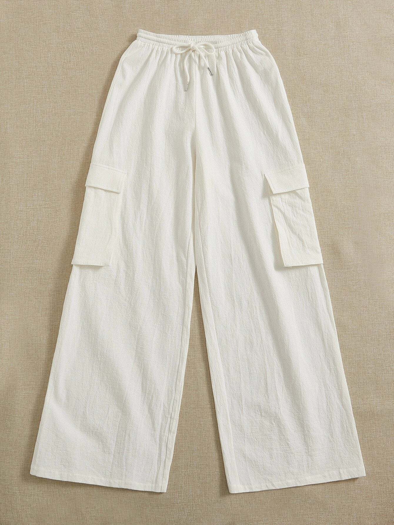 Introducing our Casual Drawstring Flap Pocket Cargo Pants, a perfect blend of comfort and style. Crafted from cotton woven fabric, these pants offer a loose fit and a long length, ideal for casual outings. The drawstring waist ensures a customizable fit, while the flap pockets add a touch of utility.