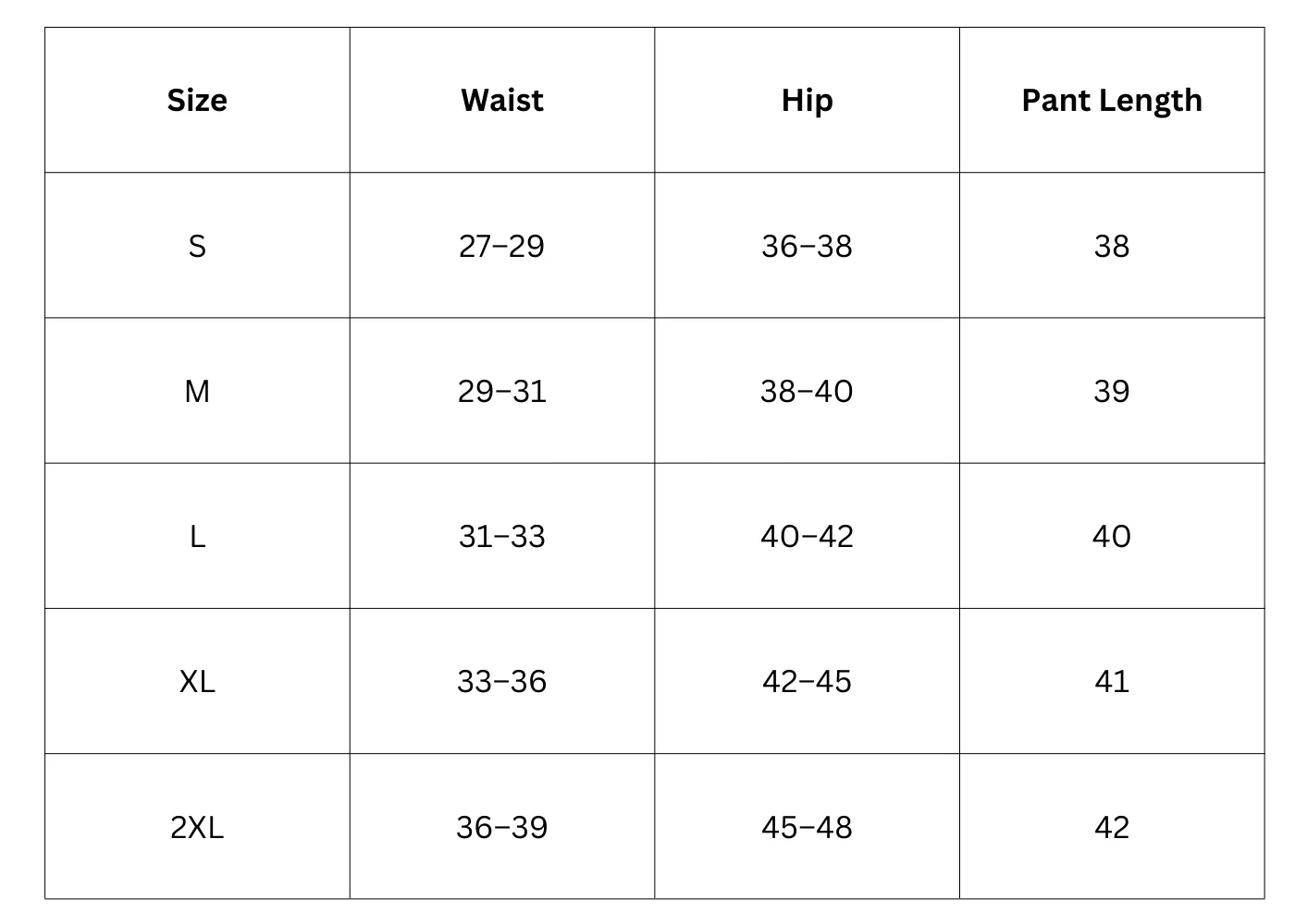 These are well-suited to pear and hourglass shapes. Size to your hip measurement: the hip and thigh fit is fixed, the waist can be adjusted with a belt or taken in slightly if needed. For a pear shape, the most common issue with non-stretch bottoms is the gap at the back waistband when the hips are larger relative to the waist — a belt solves this quickly. The key measurement to get right is the thigh circumference, not the waist: if the thigh fits comfortably, the rest of the sizing logic follows.