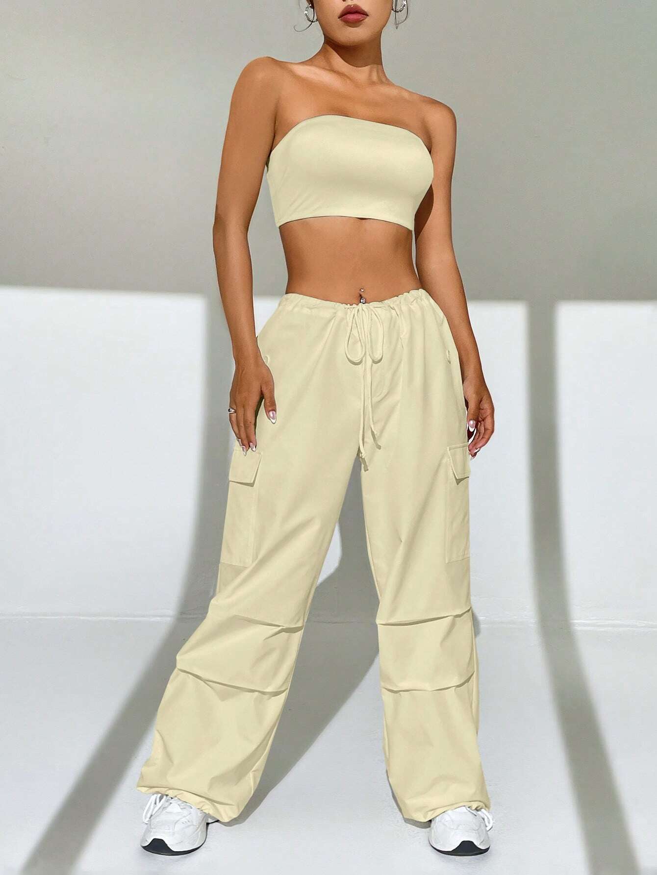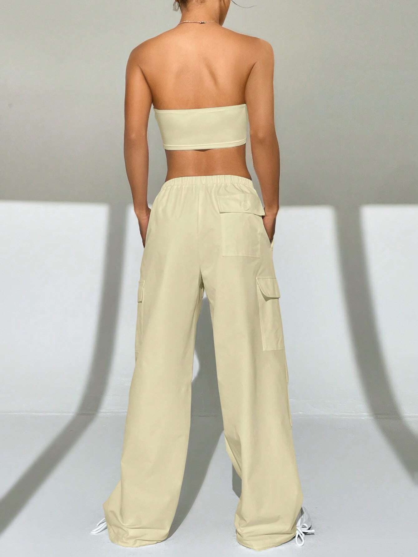 Achieve a trendy and stylish look with our Crop Top With Waist Cargo Pants. The crop top adds a fashionable and youthful touch, while the waist cargo pants offer functionality and versatility. Crafted with high-quality materials, these pants ensure durability and long-lasting wear.