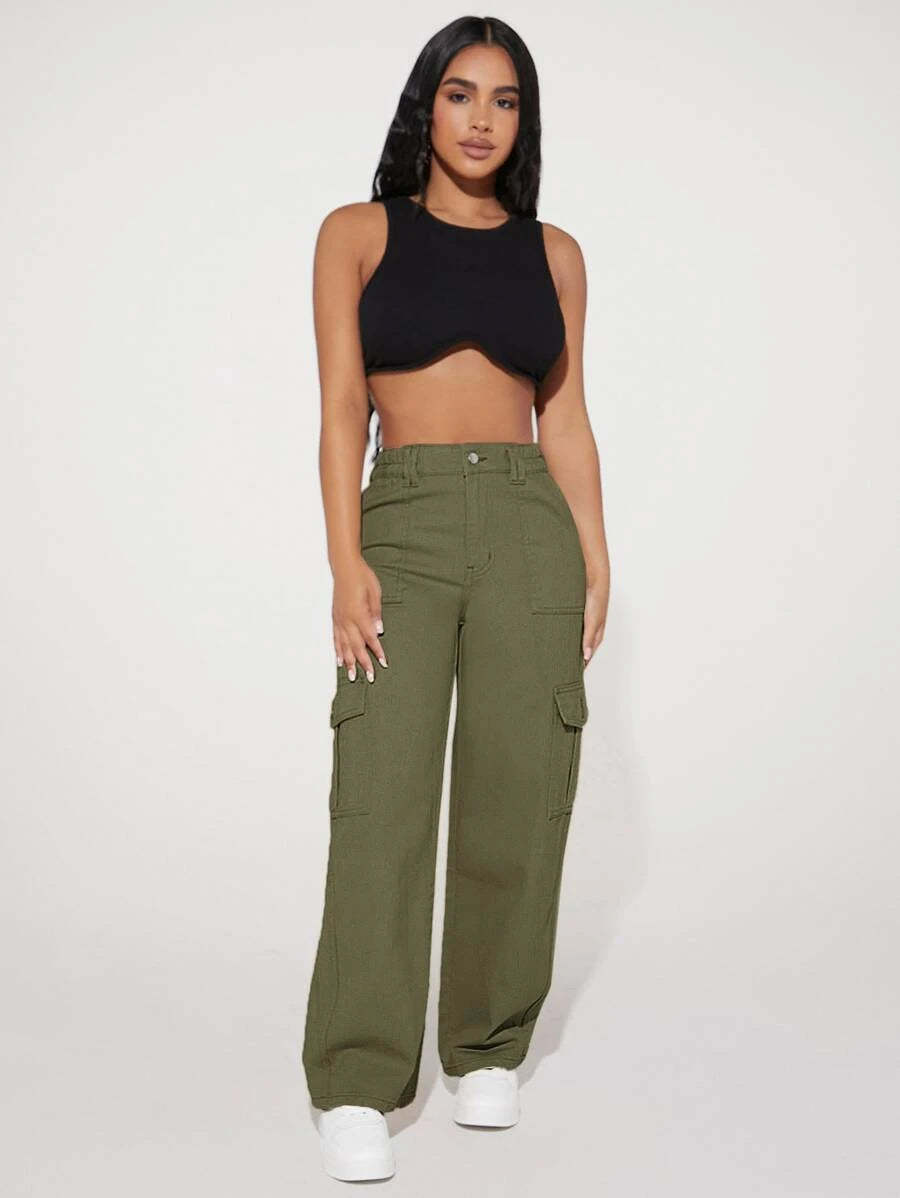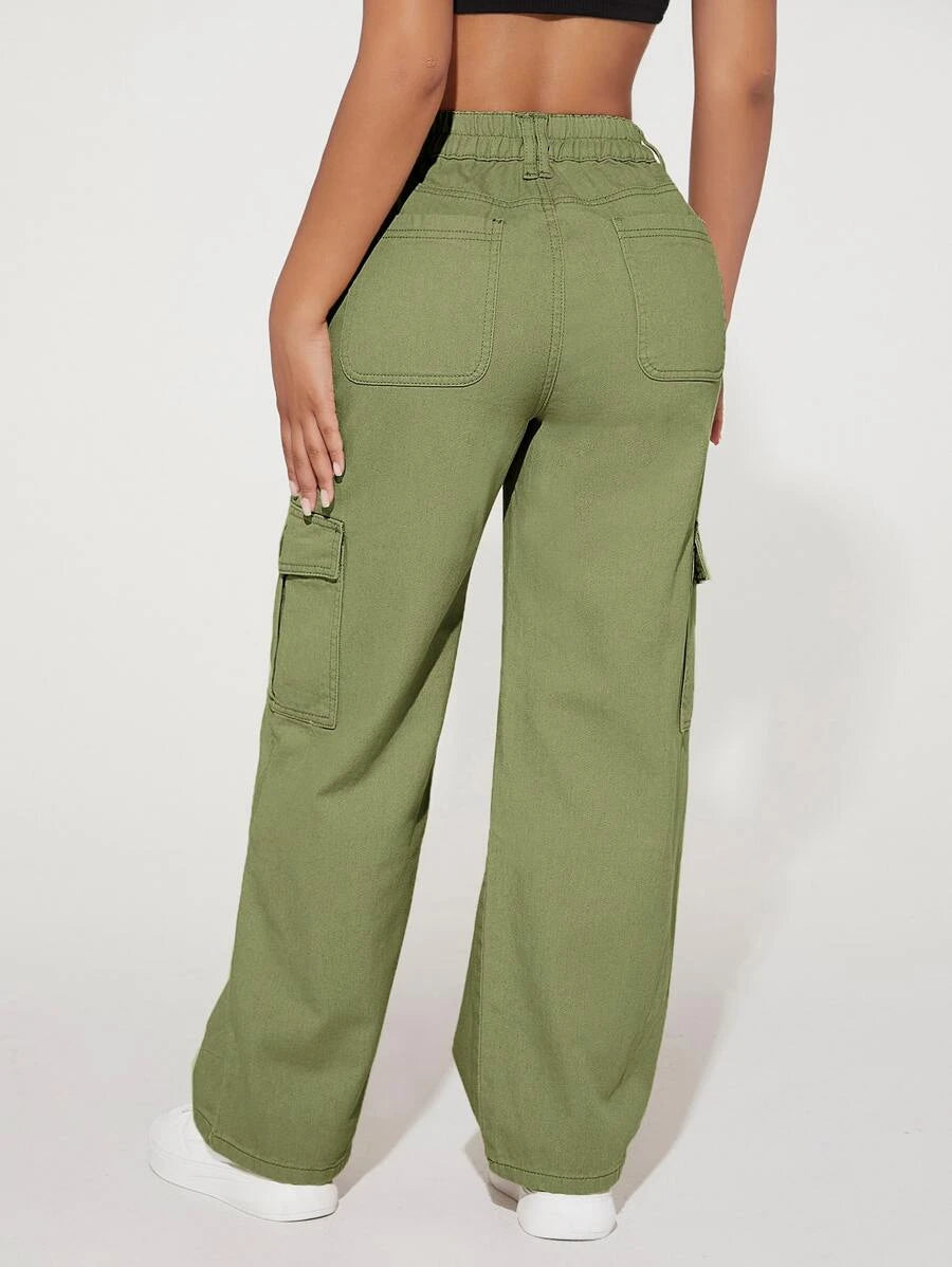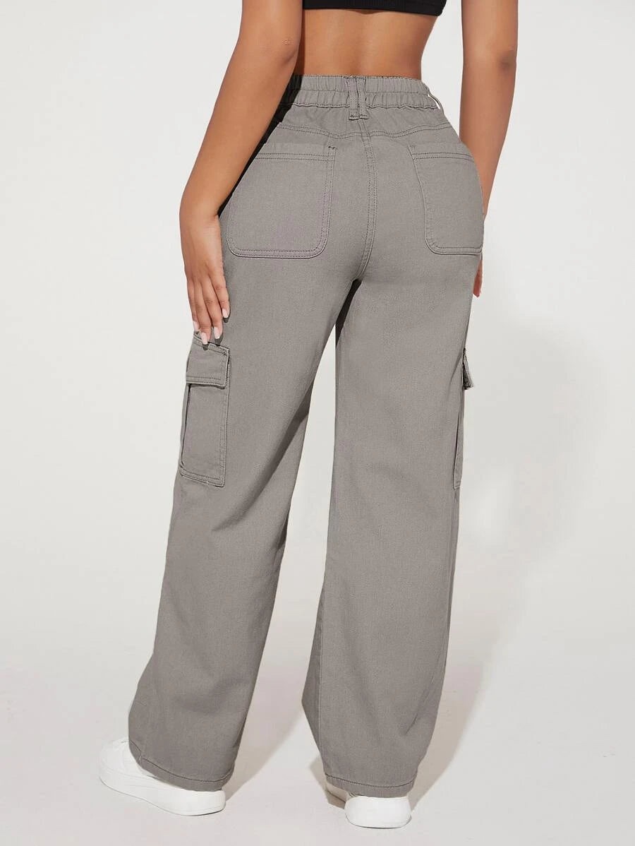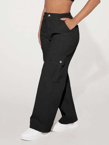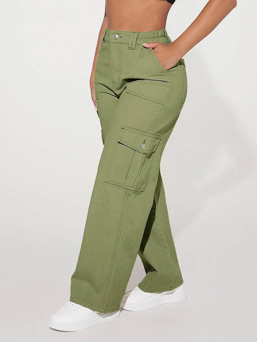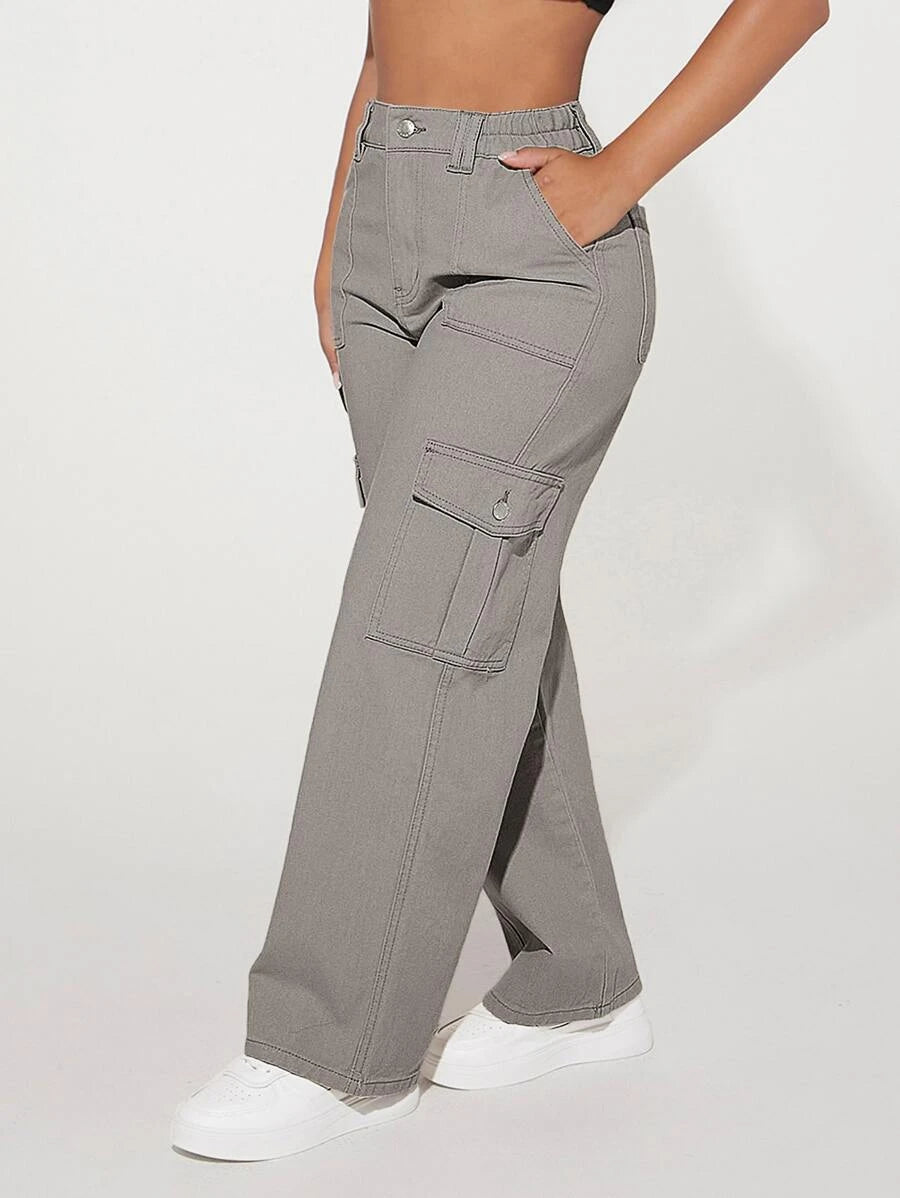 Step into urban fashion with these Denim High Waist Flap Pocket Cotton Cargo Jeans, an embodiment of effortless cool, and contemporary edge. Crafted from premium quality denim, these jeans boast a flattering high-waisted design that accentuates your silhouette with poise and confidence. The structured cotton fabric exudes durability, while the cargo-style pockets add a touch of functional elegance. Embrace the raw, untamed spirit of the urban landscape as you navigate through the streets in these timeless jeans, embodying a fusion of rugged utility and sleek sophistication.