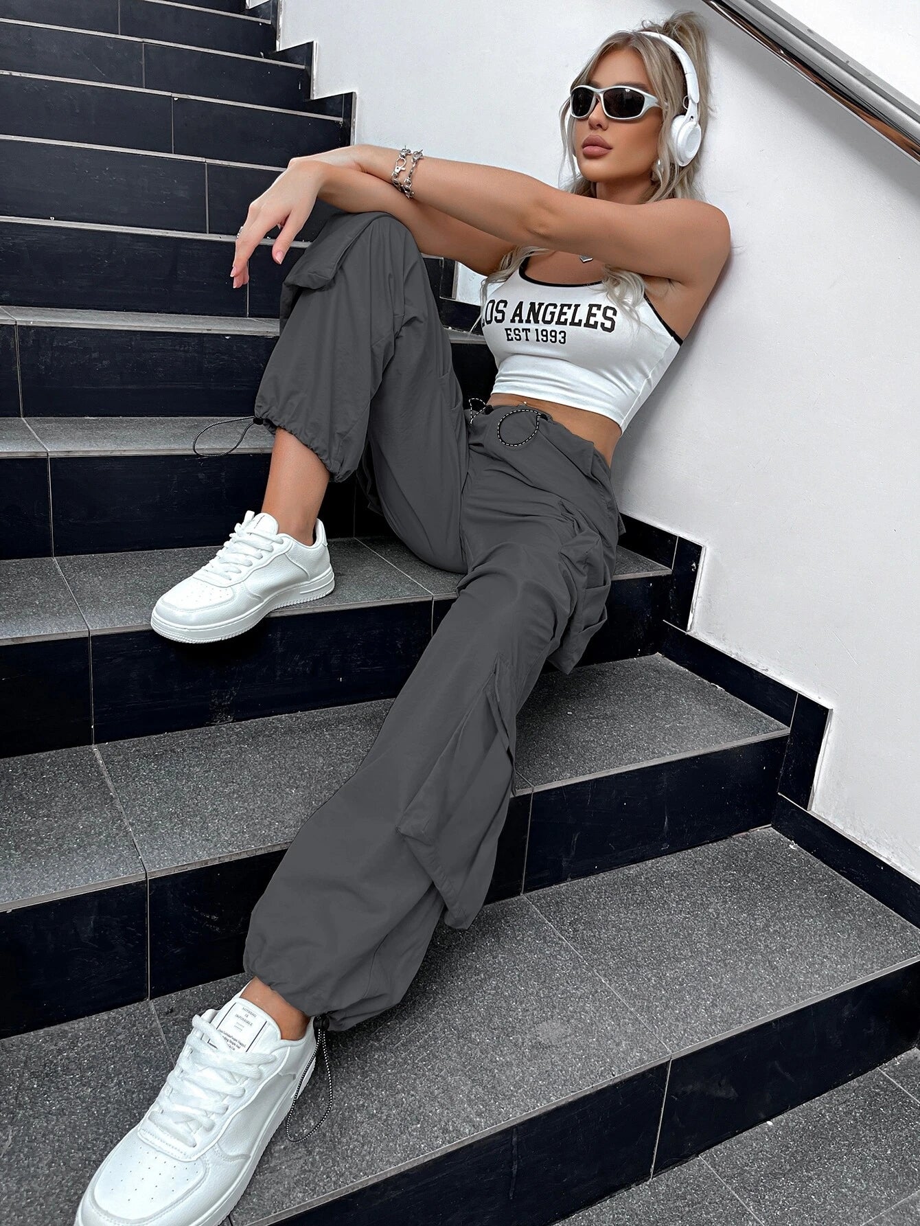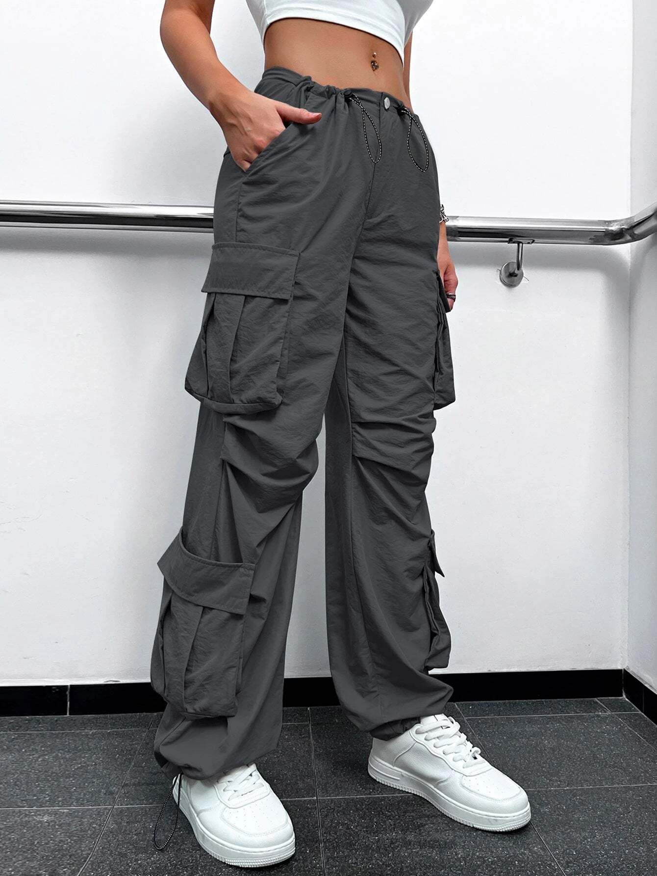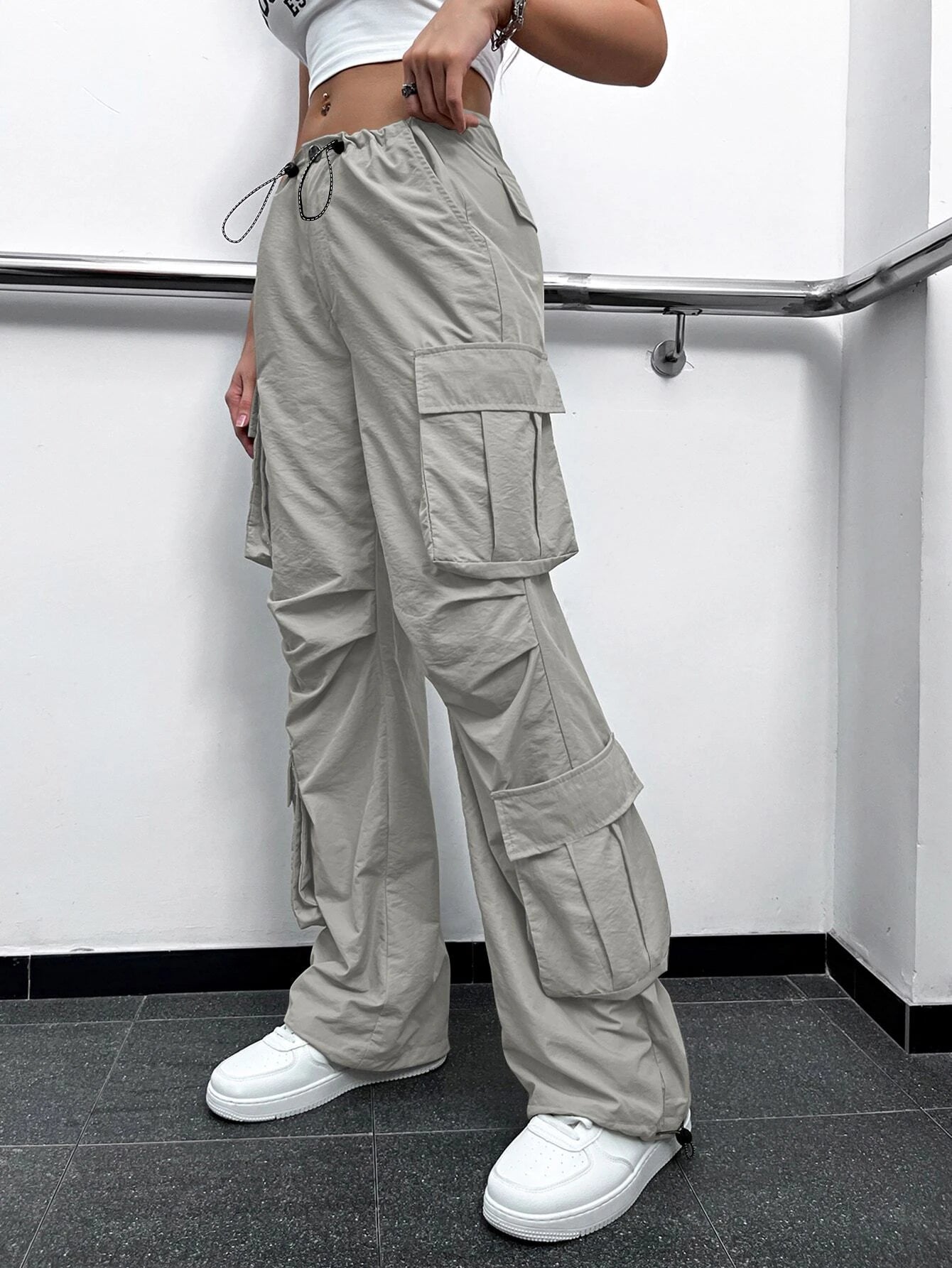 Embrace a fashion-forward mindset with these Drawstring High Waist Ruched Parachute Pants. They are the epitome of modern sophistication, combining comfort and style in an extraordinary way. Prepare to make a statement with these pants that effortlessly capture the essence of contemporary fashion, leaving an indelible impression wherever your adventures may take you.
