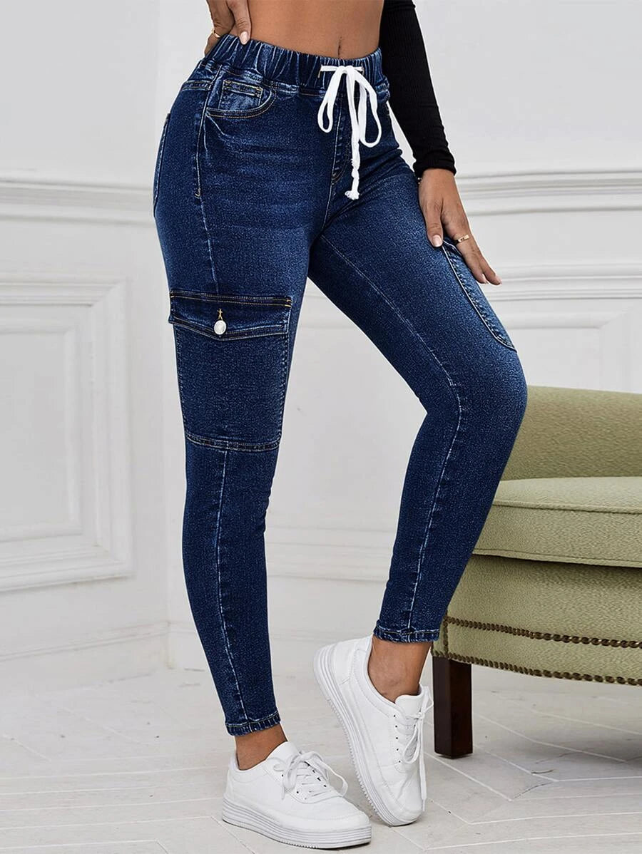 Stay comfortable and stylish with our Drawstring Waist Flap Pocket Cargo Jeans. These jeans feature a drawstring waist that allows for a customized fit and adds a trendy detail to the design. The flap pockets on the front offer both functionality and style, allowing you to carry your essentials with ease. Elevate your denim collection with our Drawstring Waist Flap Pocket Cargo Jeans and enjoy a fashionable and versatile choice for any occasion.
