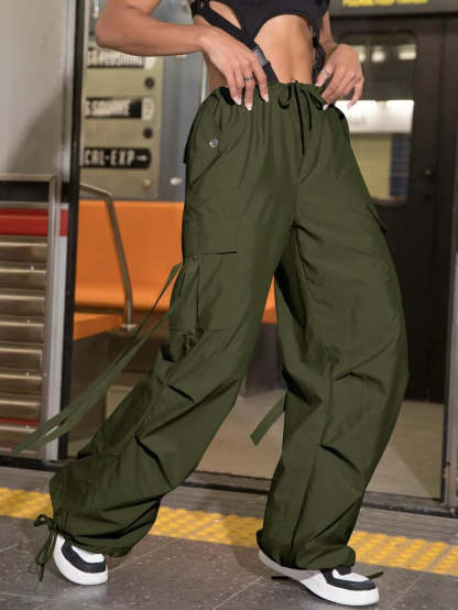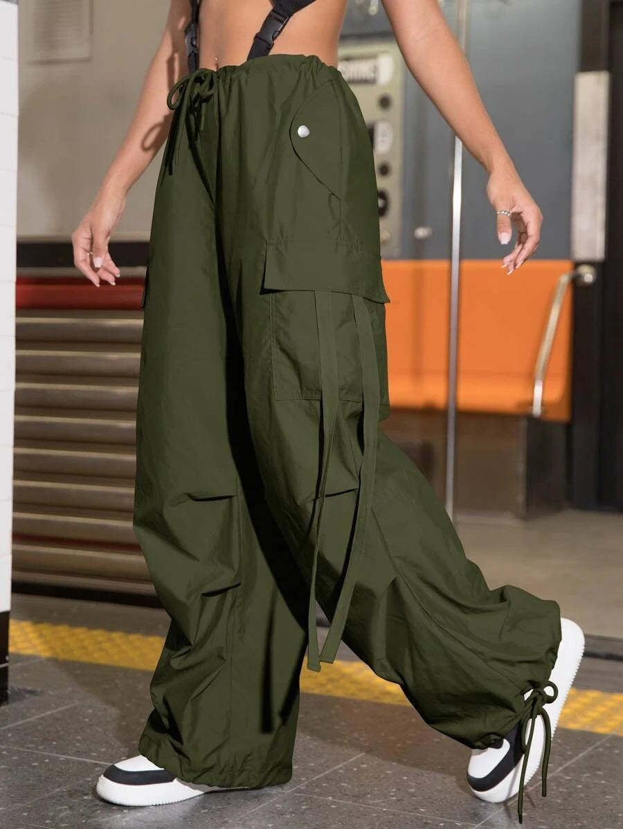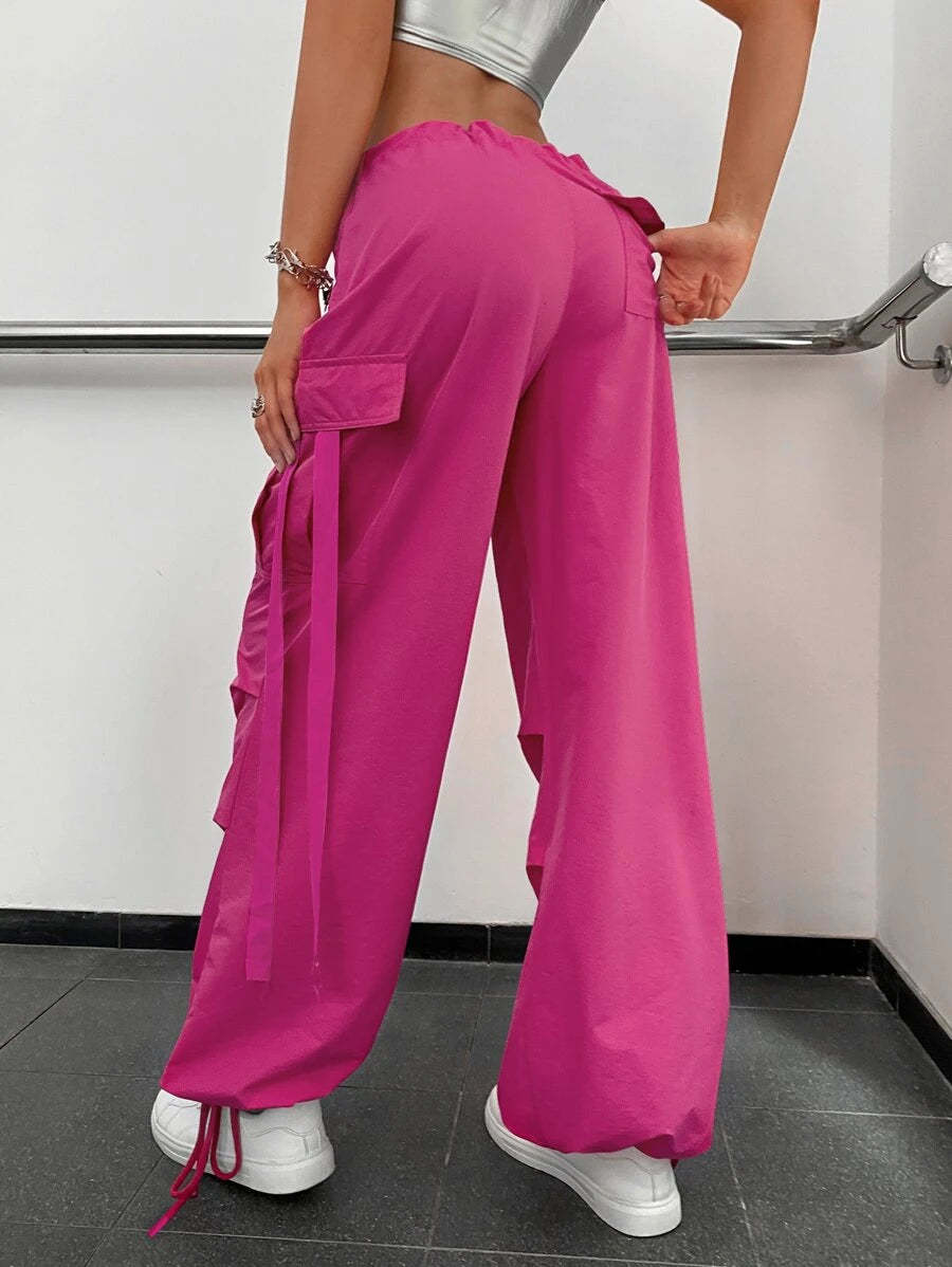 Stay comfortable and stylish with our Drawstring Waist Flap Pocket Side Casual Cargo Pants. These pants feature a drawstring waist that allows for a customizable and comfortable fit. The flap pockets on the sides add a trendy and functional element to the design, offering convenient storage for your essentials.