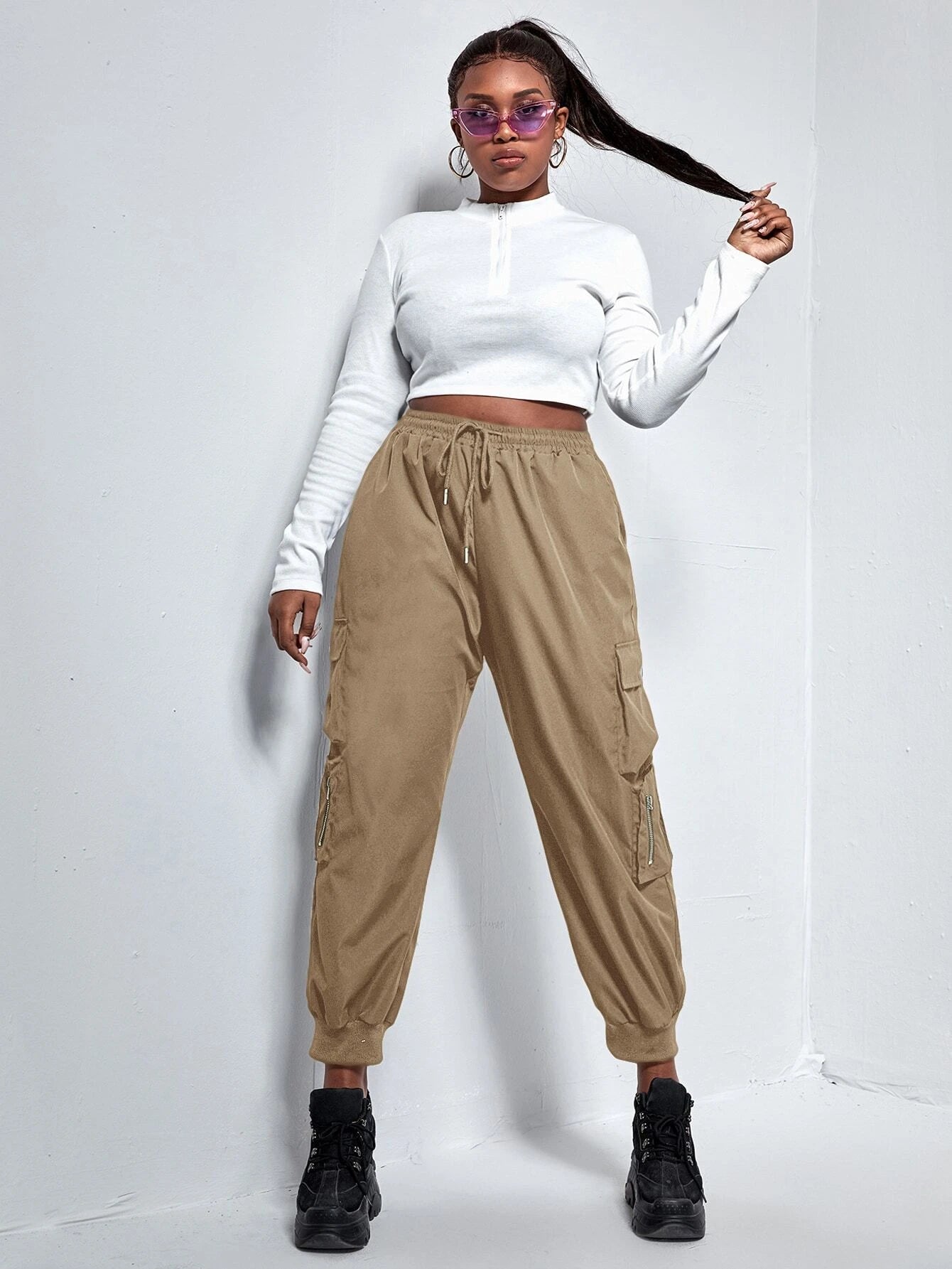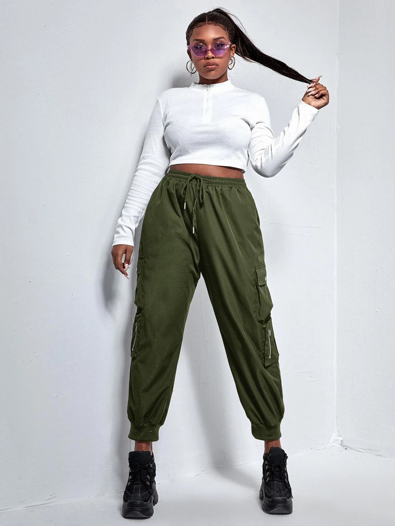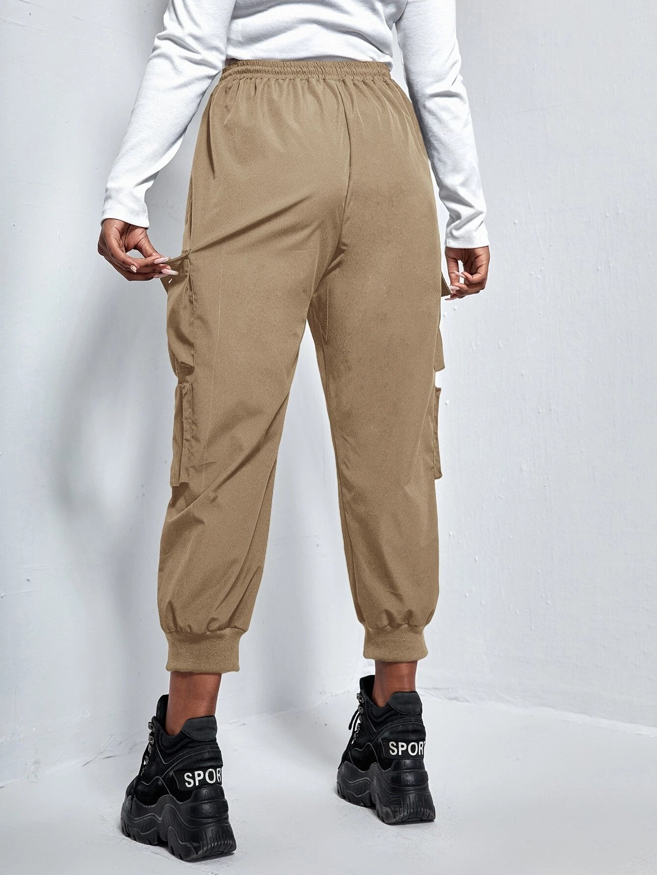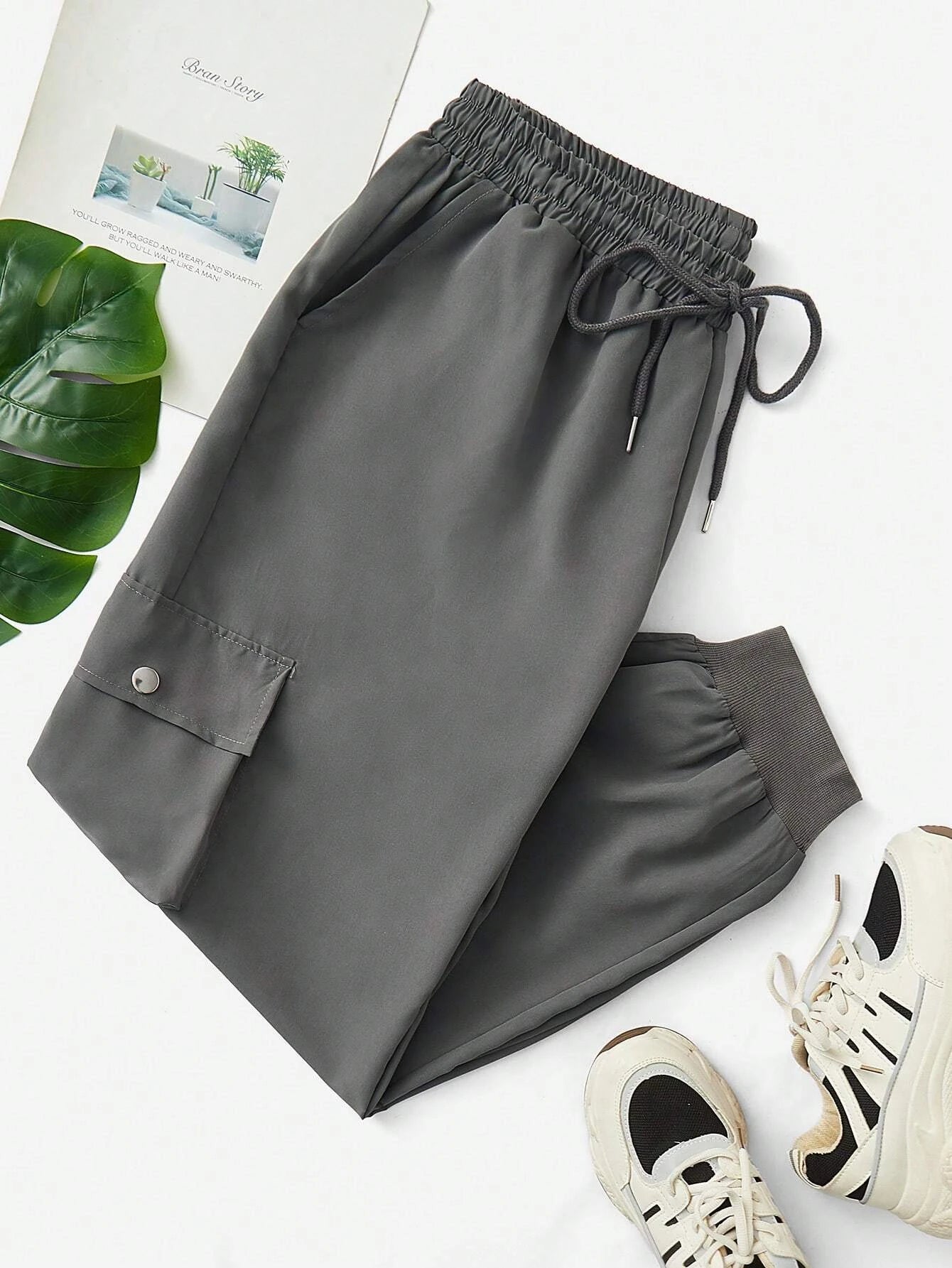Make these Flap Pocket Drawstring Cargo Pants your go-to for casual days! Durably crafted with polyester, they feature a high waist design, front and side pockets to keep your stuff safe and secure, and adjustable drawstrings for extra comfort. Perfect for all your laid-back adventures. So go ahead, get your swagger on, it's good for the soul.