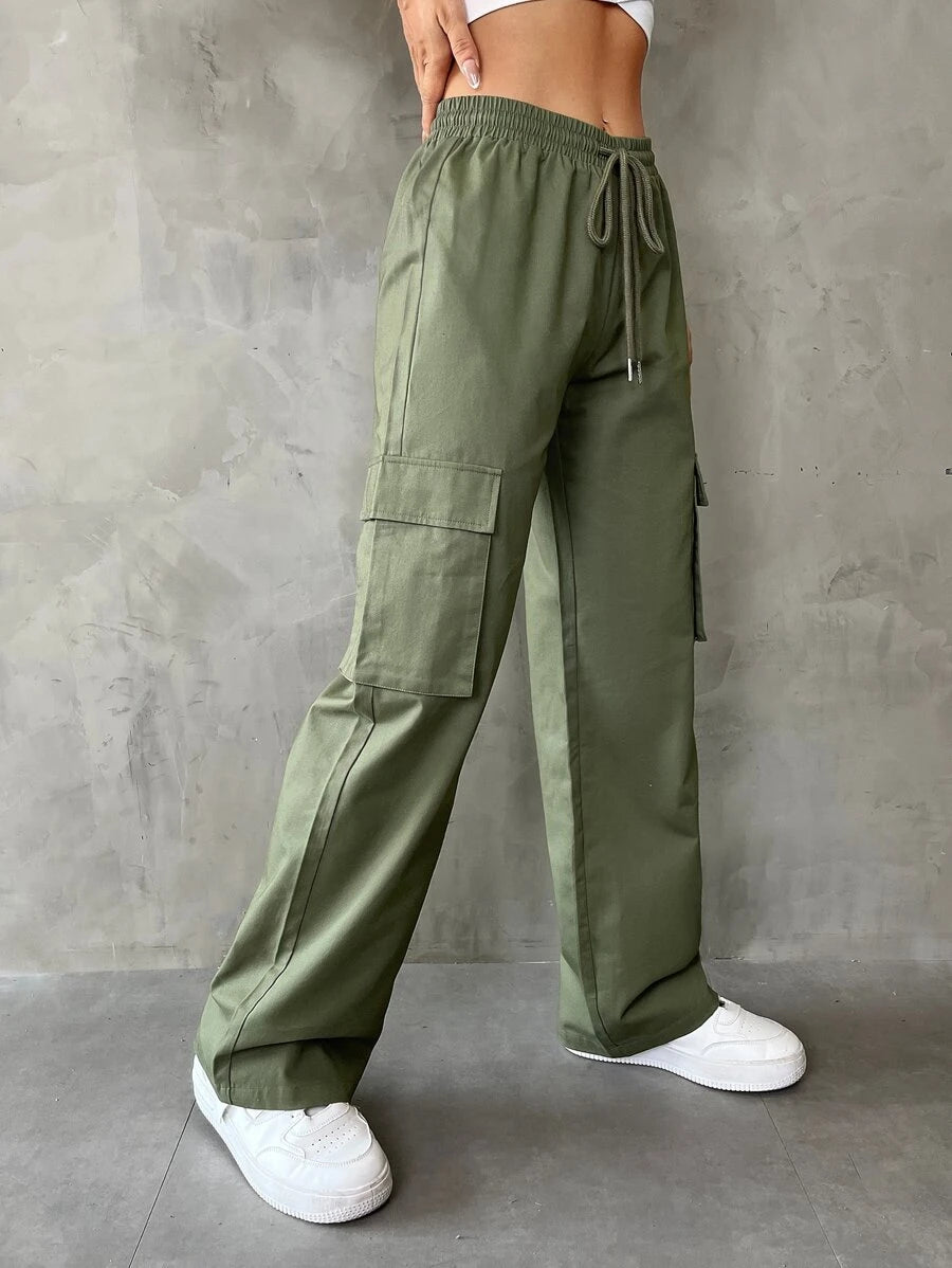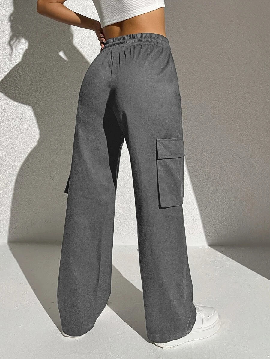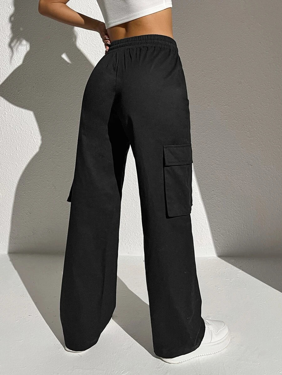 Introducing the epitome of utilitarian fashion, the Flap Pocket Drawstring Waist Cargo Pants. This sartorial masterpiece effortlessly merges functionality with undeniable sophistication. Crafted with meticulous attention to detail, these pants boast an abundance of well-placed pockets, offering a harmonious balance between practicality and elegance. Let these pants be a statement of your individuality, a testament to your discerning taste, and an embodiment of your adventurous spirit.