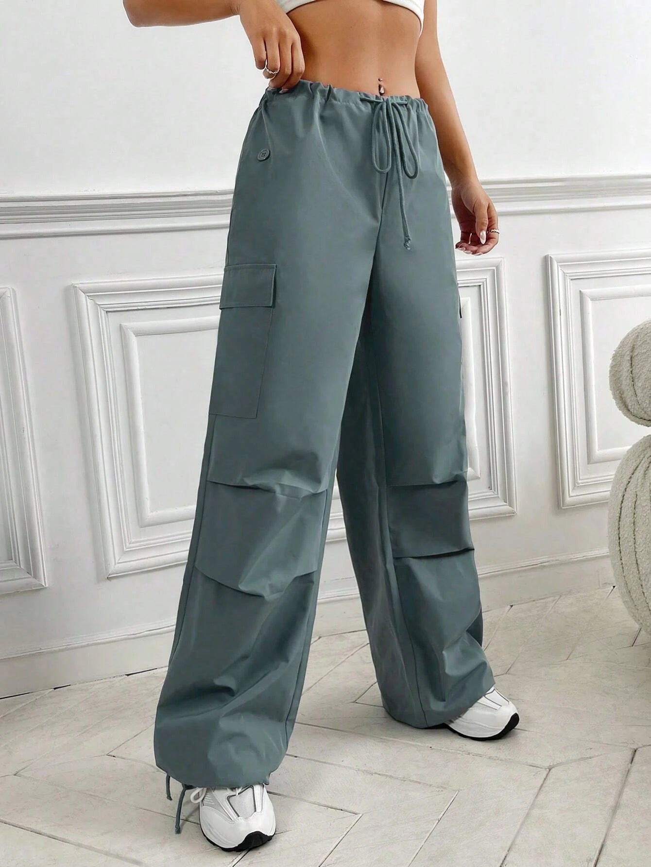 Experience the perfect blend of comfort and style with our Flap Pocket Drop Waist Cargo Pants. These pants are designed for those who appreciate functionality without compromising on fashion. Whether you're exploring the city streets or simply lounging at home, these cargo pants offer versatility for any occasion. Pair them with a casual t-shirt for a laid-back vibe, or dress them up with a button-down shirt for a more polished ensemble.