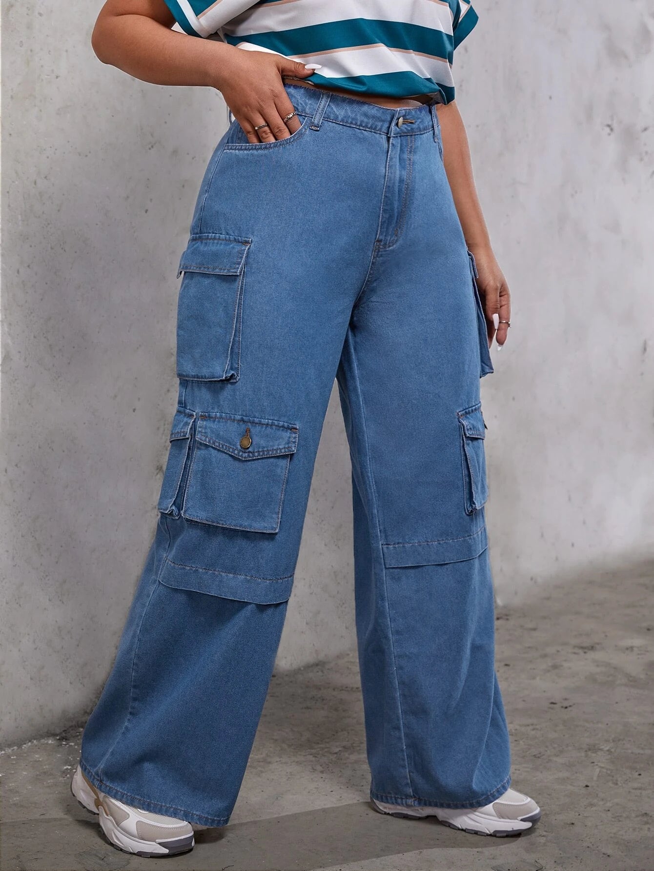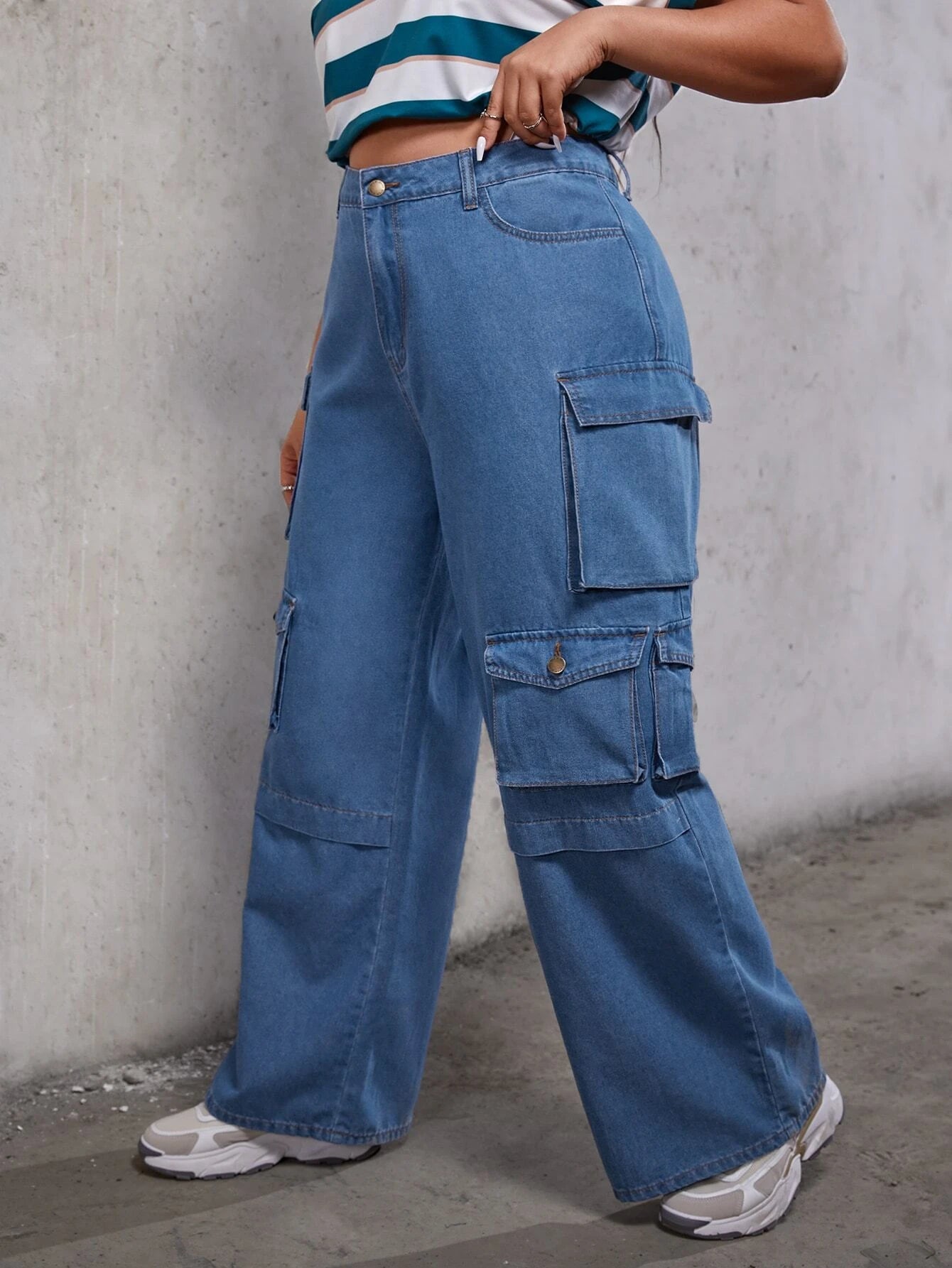 Step out in style with our Flap Pocket Loose Cargo Jeans! These enviable ready-for-anything bottoms feature a zipper fly and plenty of pockets to keep all your stuff safe. Crafted with a denim-cotton blend, these pants are as comfy as they are casual. So go ahead and put your best fashion foot forward and stride forward in confidence.