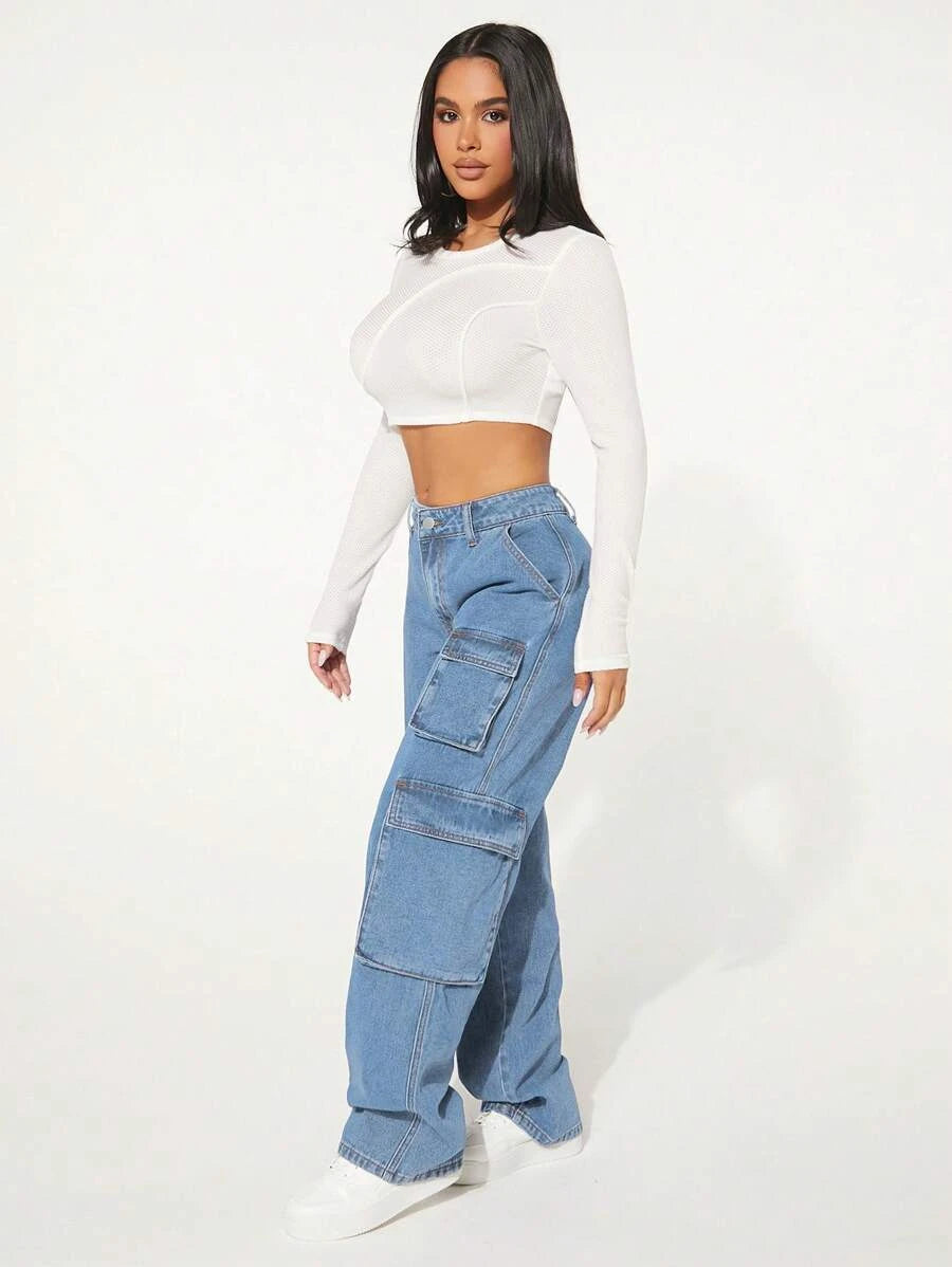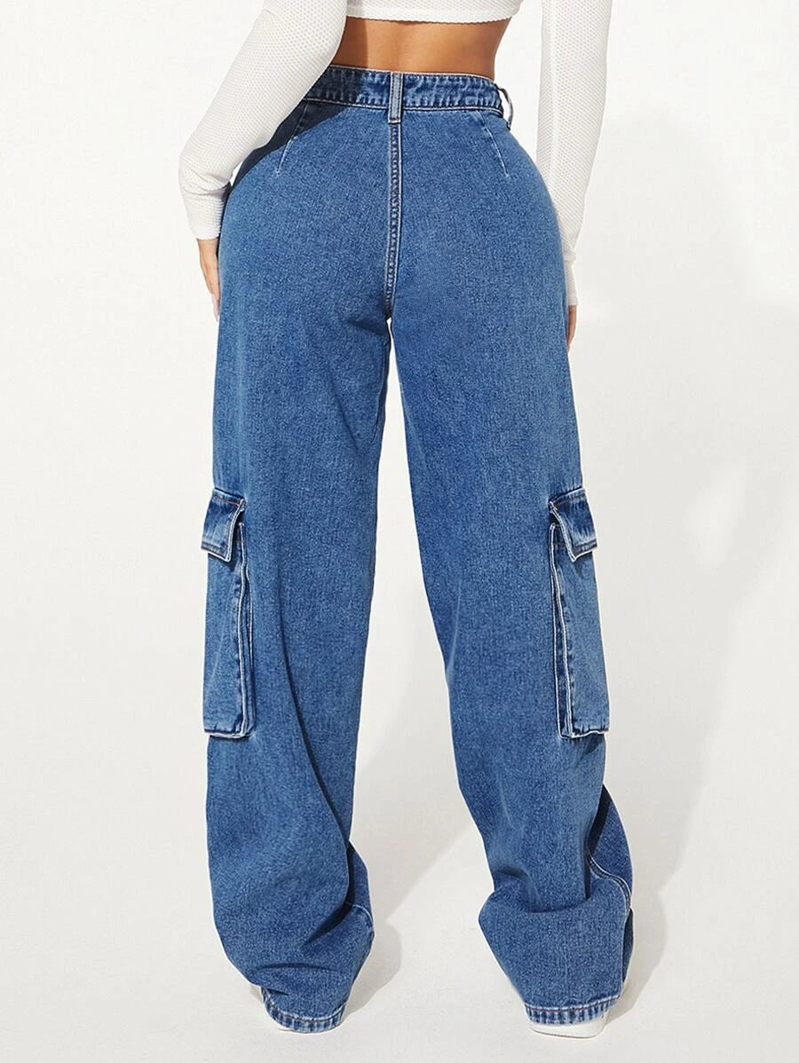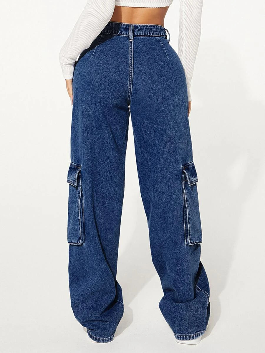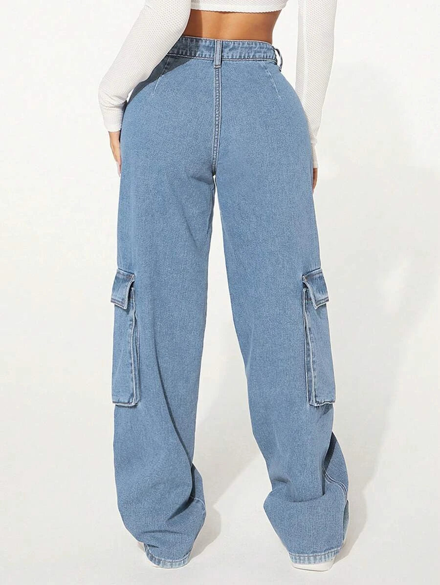 Stay on-trend with our Flap Pocket Side Cargo Jeans. These jeans feature flap pockets on the sides, adding a stylish and functional touch to the design. Made with high-quality denim, these jeans are durable and designed to withstand everyday wear. The classic denim look combined with the cargo pockets creates a versatile and fashion-forward style.