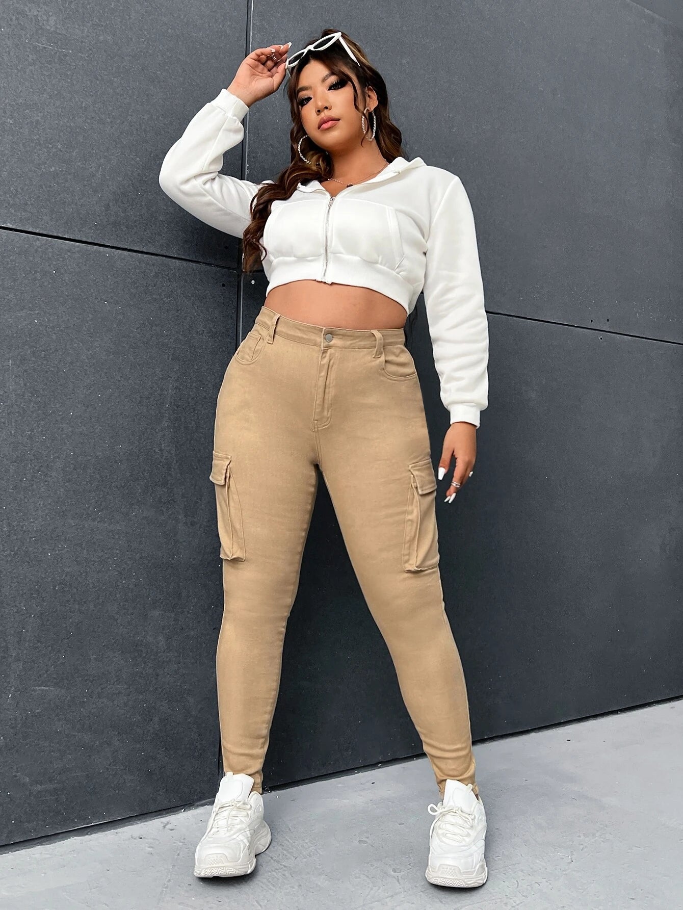 Our Flap Side Pocket Cargo Jeans will make sure you stay comfortable and stylish no matter where your adventure leads you. Made of sturdy denim cotton, these hip cargo pants feature a zipper fly, classic pockets, and a beige color that will make you stand out. So go ahead and get some "pants on the ground" in trendy style.