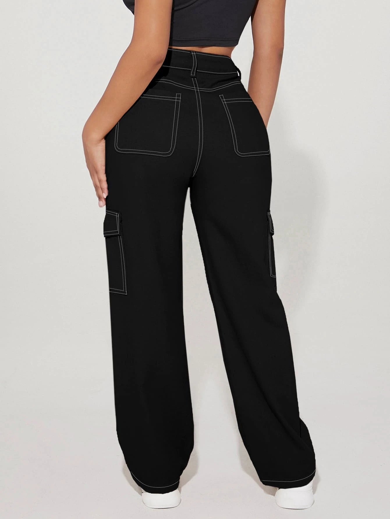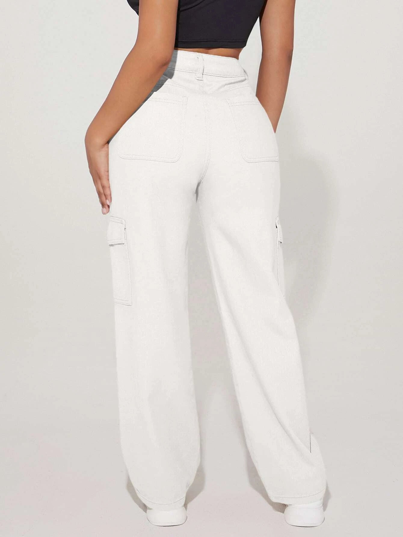 Introducing our High Rise Flap Pocket Side Cargo Jeans, the epitome of style and practicality. These jeans feature a flattering high waist design that not only accentuates your figure but also provides a comfortable and secure fit. The flap pockets on the sides add a touch of functionality and visual interest, offering ample storage space for your essentials while giving these jeans a unique and modern edge.