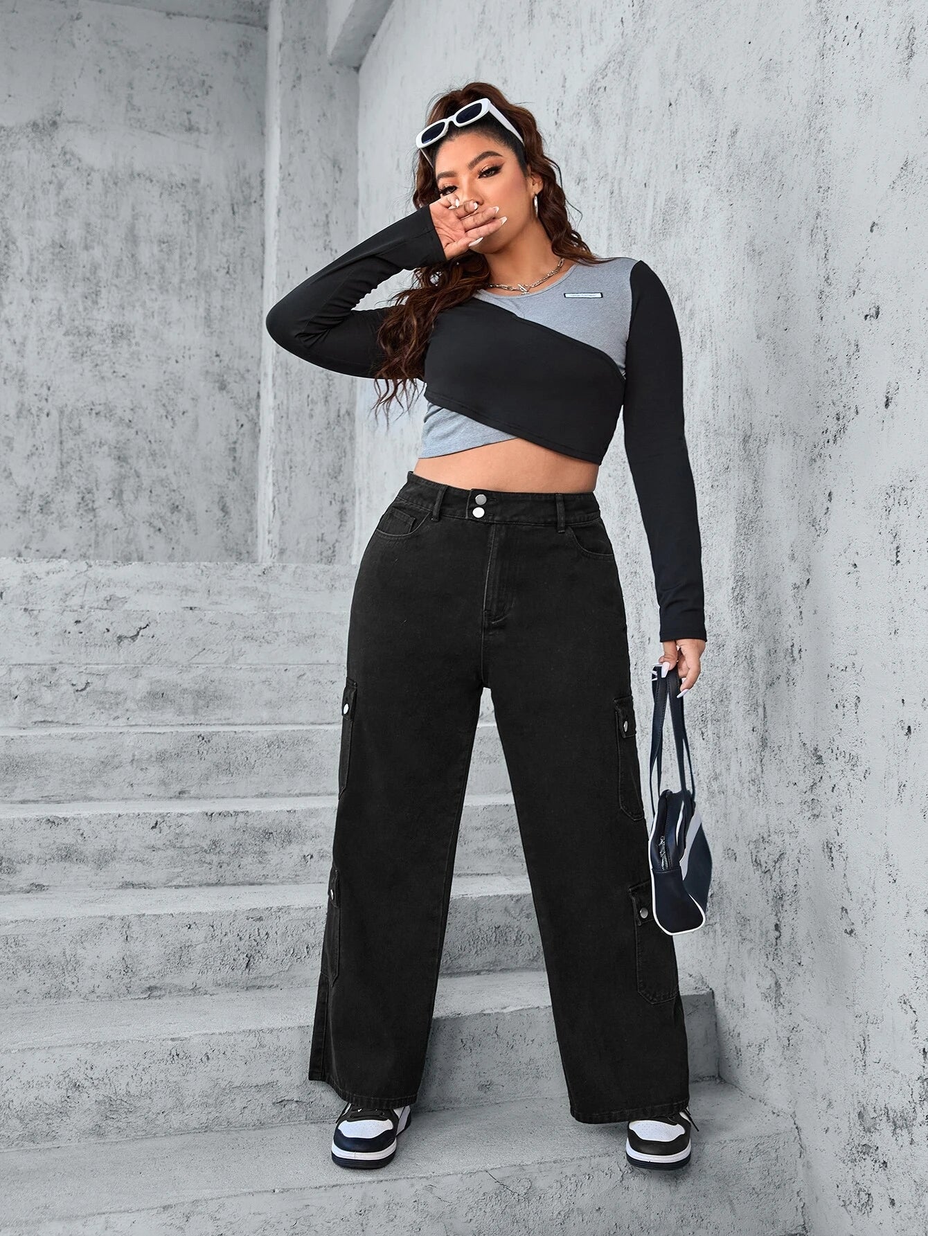 Discover the perfect blend of fashion and functionality with our High Waist Flap Pocket Cargo Jeans. Crafted from sturdy denim fabric, these jeans feature a high waistline and a loose fit for a comfortable and flattering silhouette. The cargo-inspired design adds a touch of utility, while the flap pockets provide practical storage.