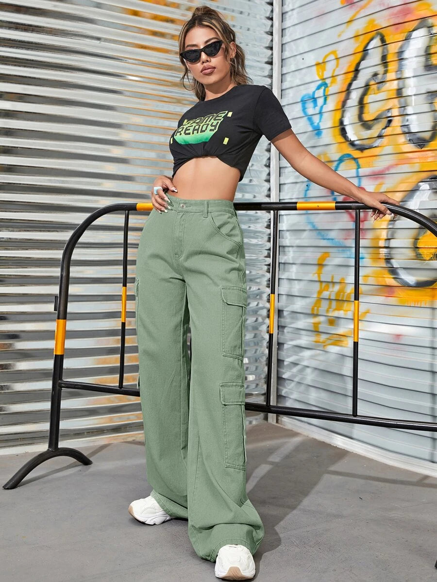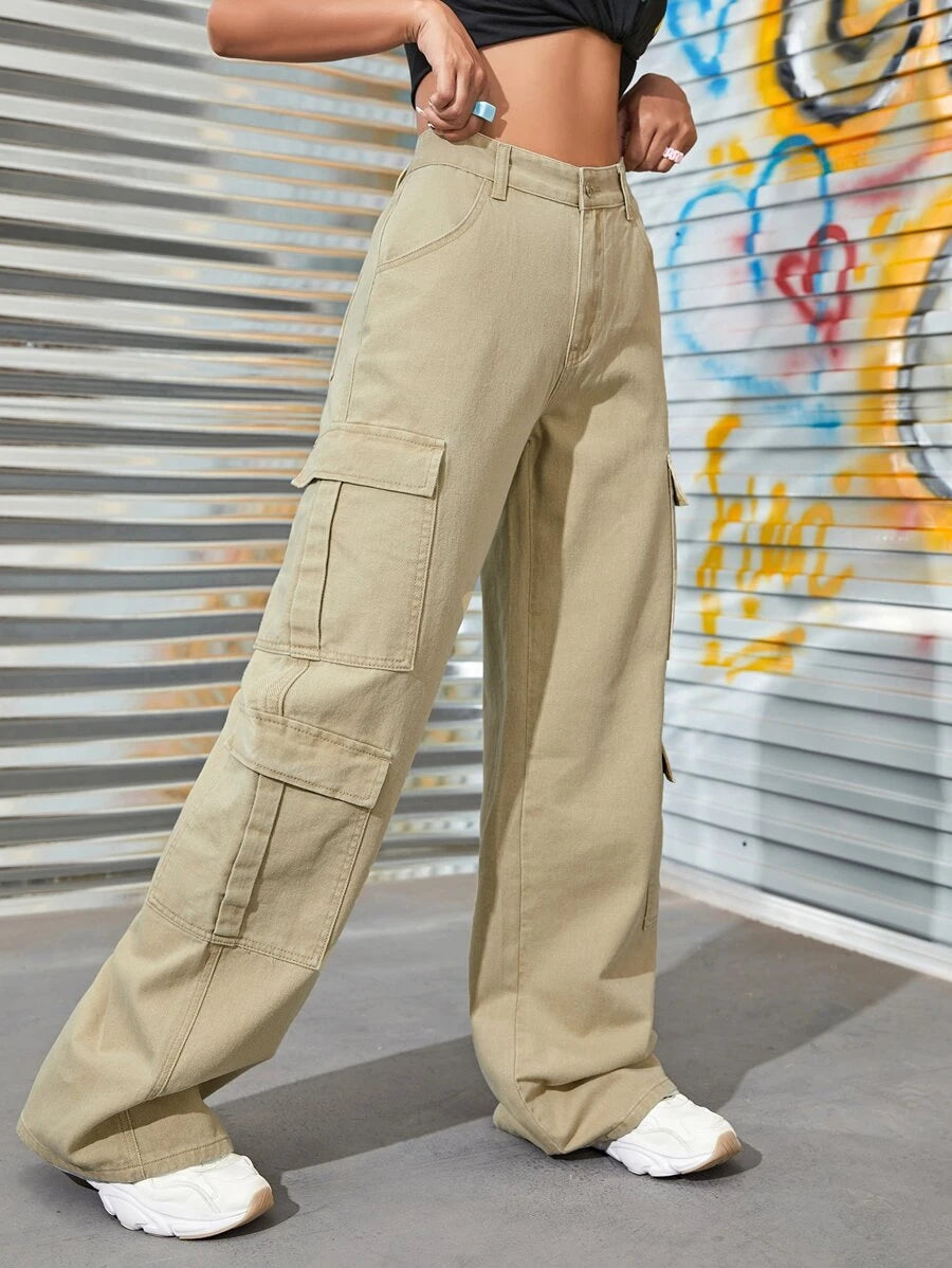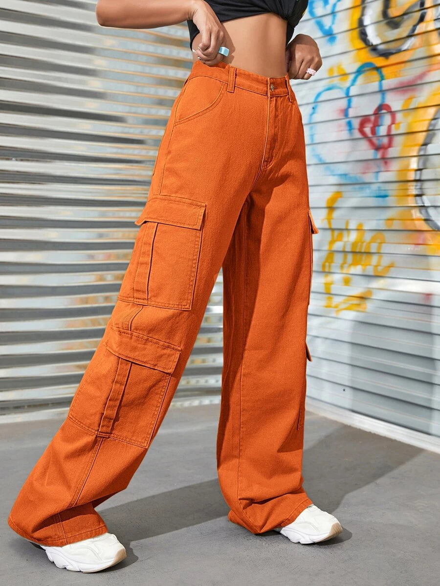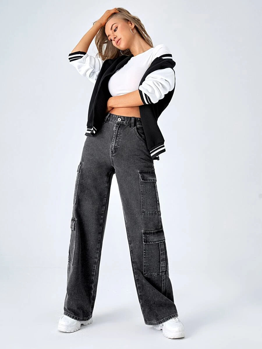Upgrade your denim collection with our High Waist Zipper Fly Flap Pocket Cargo Jeans. These jeans feature a high waistline that accentuates your curves and adds a touch of sophistication to your outfit. The zipper fly closure adds a modern and edgy touch to the jeans, while the flap pockets on the front provide both style and functionality.