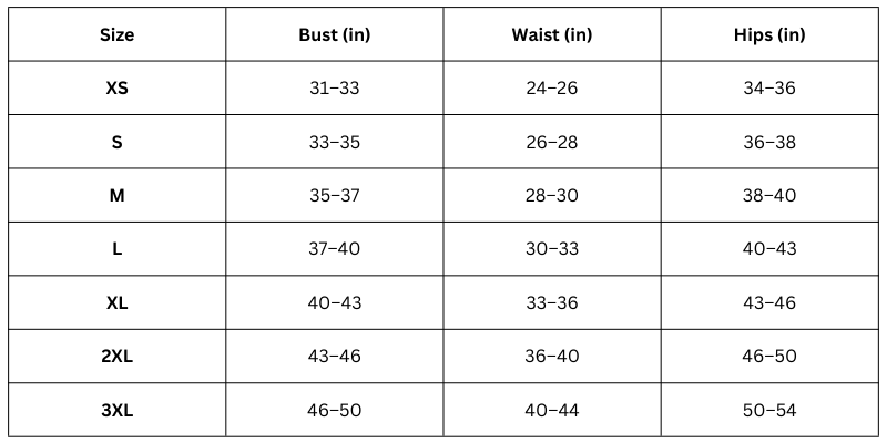 Size Chart (Inches):