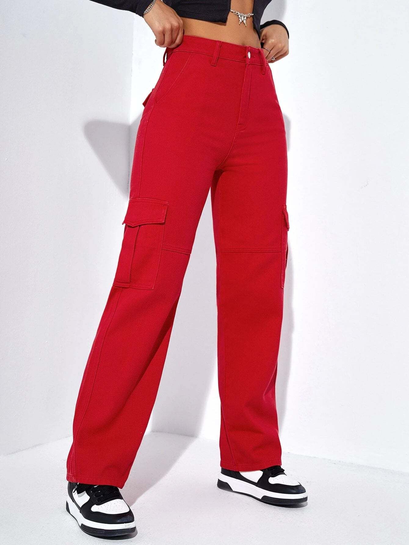 Our Plain Long Cargo Jeans are the perfect casual denim choice when you want to make a statement. Zip things up right with their zipper fly closure and store all your necessities in their spacious pockets for easy access. And with their high waist fit, you'll look cool and comfortable all day long. You won't find a better pair of pants.