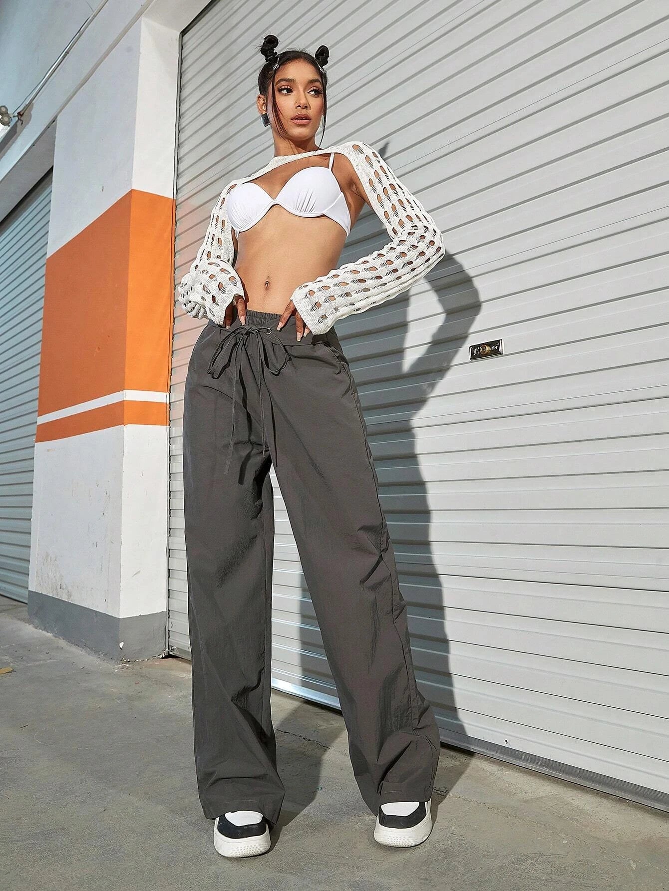 Introducing our versatile Pocket Drawstring Waist Cargo Pants! Crafted from premium Polyamide fabric, this piece boasts a loose fit for maximum comfort and a high waistline that flatters your figure. With its functional drawstring and roomy pockets, it strikes the perfect balance between style and practicality.