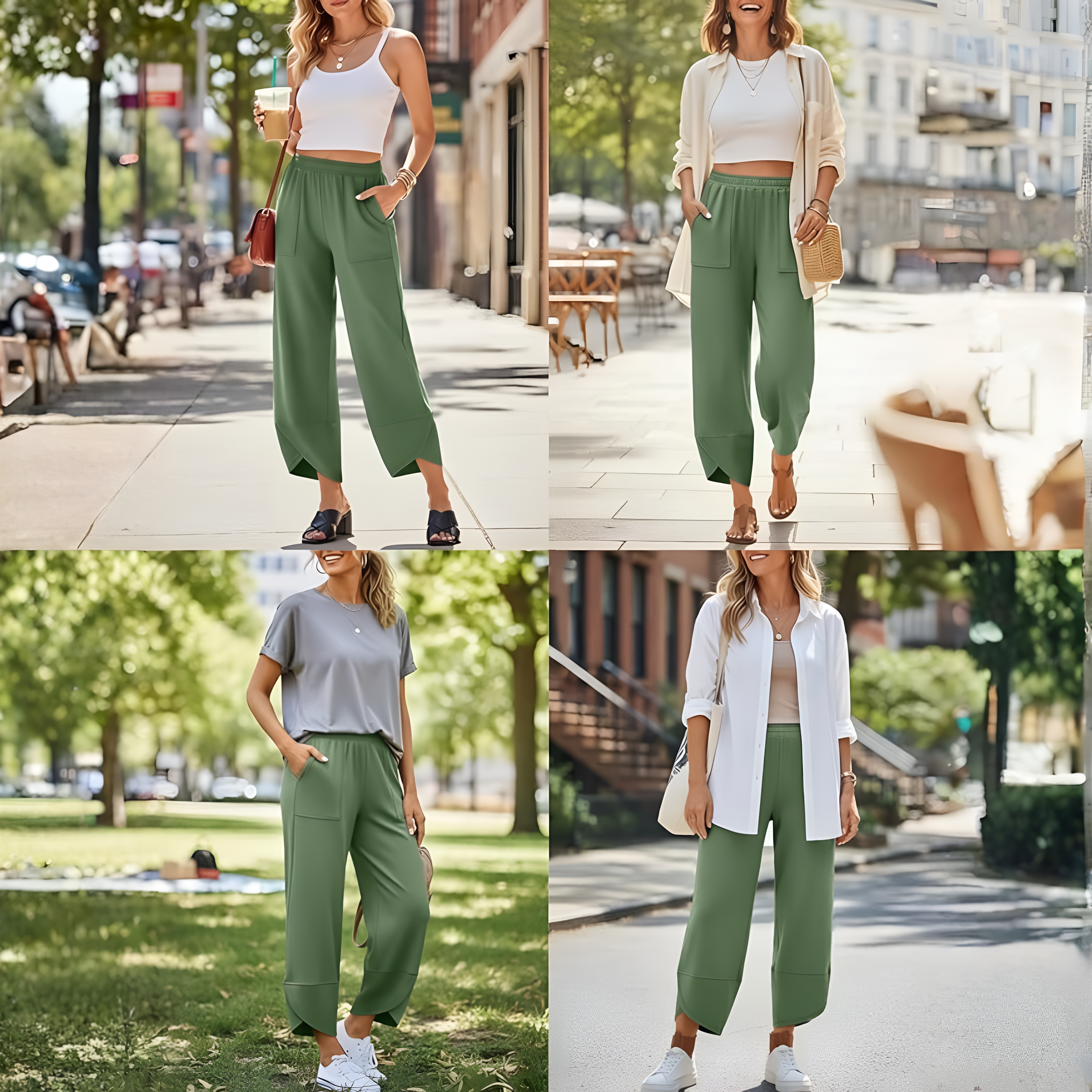 These pants are designed for people who want comfort without giving up style. The soft fabric blend creates a gentle feel that works well for long hours of wear, while the chill shape adds an effortless look to daily outfits. Their cropped length makes them especially suitable for casual seasonal dressing, helping create light and easy combinations with sandals, slides, or simple sneakers. The pocket design adds functionality for carrying small essentials during errands, travel, or chill outings. Their pull-on construction makes dressing quick and convenient, which is helpful for busy routines or laid-back days. Easy to pair with tanks, fitted tops, oversized tees, or lightweight layers, these pants can adapt to many casual looks. They are a dependable wardrobe option for anyone looking for airy comfort, a roomy fit, and an easygoing silhouette that feels stylish and wearable every day.