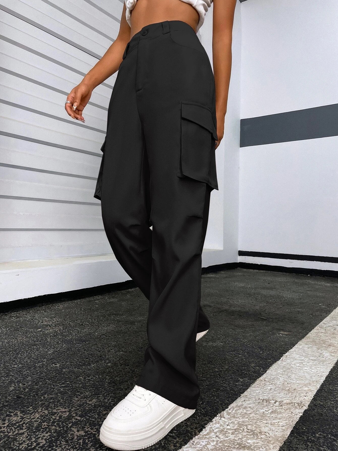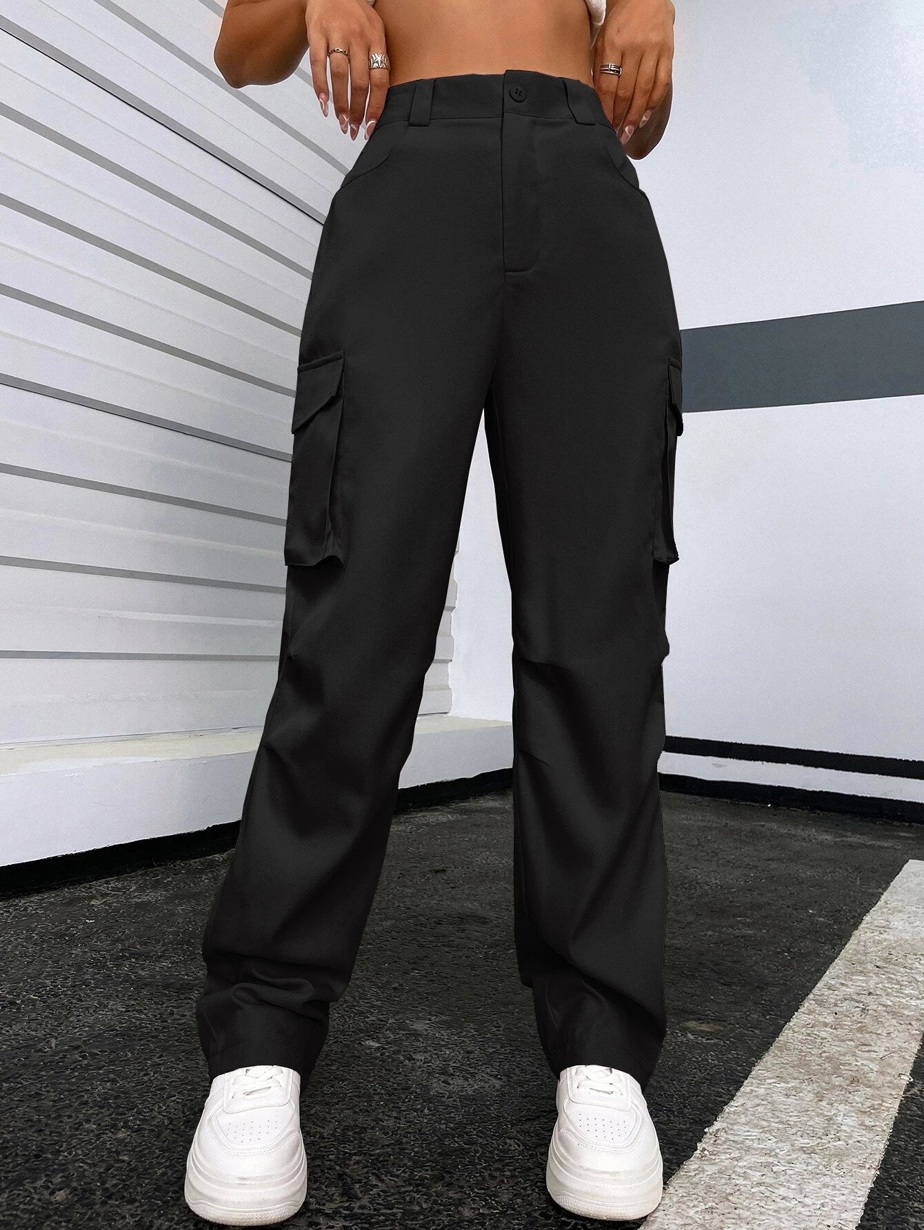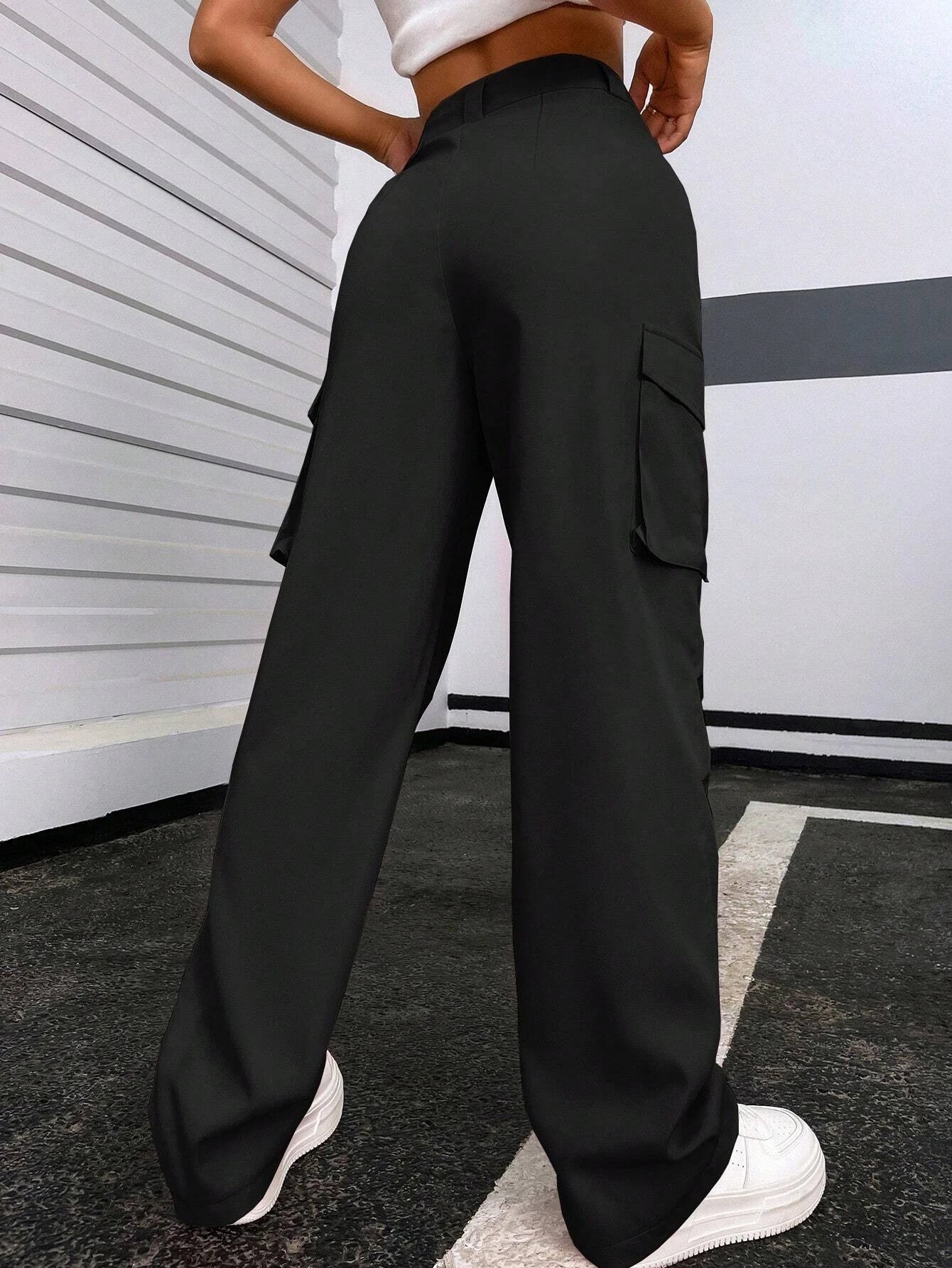 Introducing our Solid Color Flap Pocket Pants, a versatile and stylish addition to your wardrobe. These pants feature a solid color design, offering a clean and minimalist aesthetic that pairs well with a variety of outfits. The flap pockets add a touch of functionality and visual interest, while the high-quality fabric ensures comfort and durability.