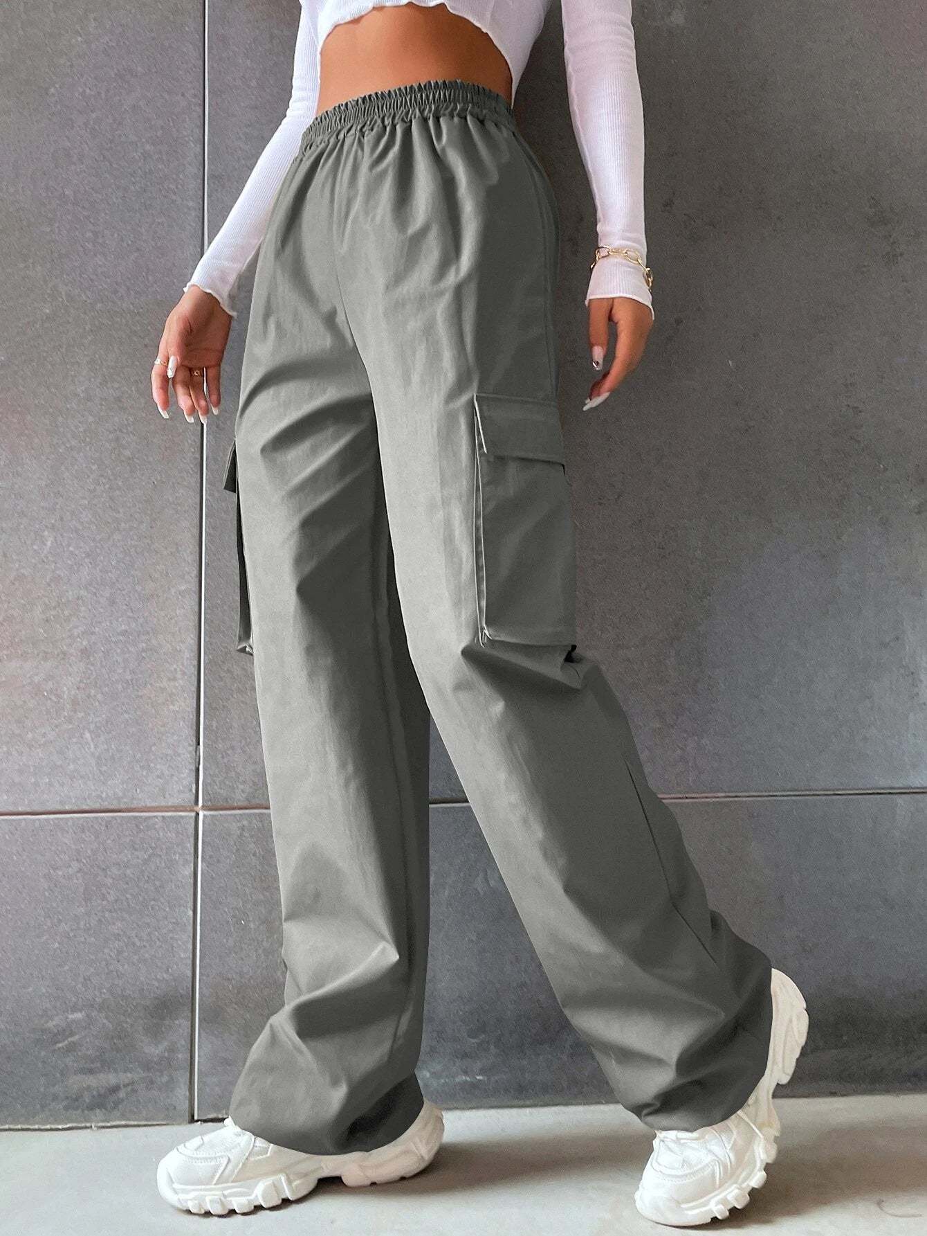 Upgrade your wardrobe with our Solid Colored Flap Pocket Long Cargo Pants. These pants offer a perfect balance between style and functionality. Designed with a focus on versatility, these cargo pants feature a solid colored design that effortlessly complements any outfit.