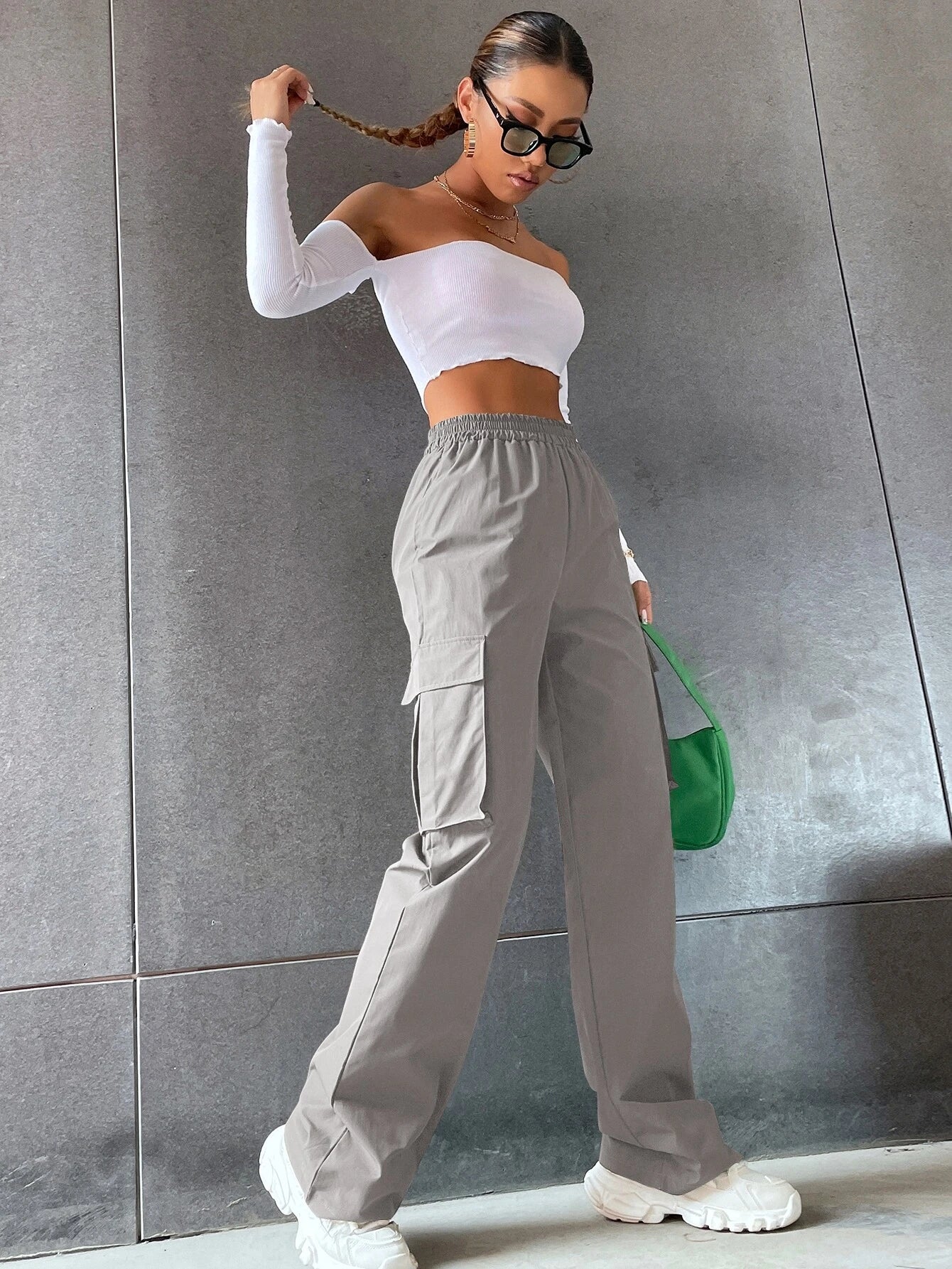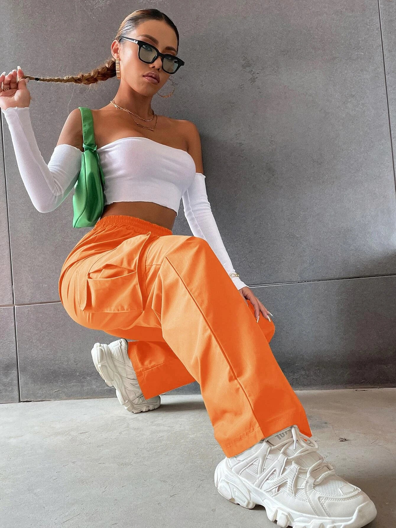 These Solid Colored High Waist Cargo Pants are the peak of casual-cool fashion. Made from pure polyester, they feature an elastic waist and pockets big enough for all your stuff. They'll keep you looking cool and feeling comfy. Who said you can't look fly while still being comfy-cozy?