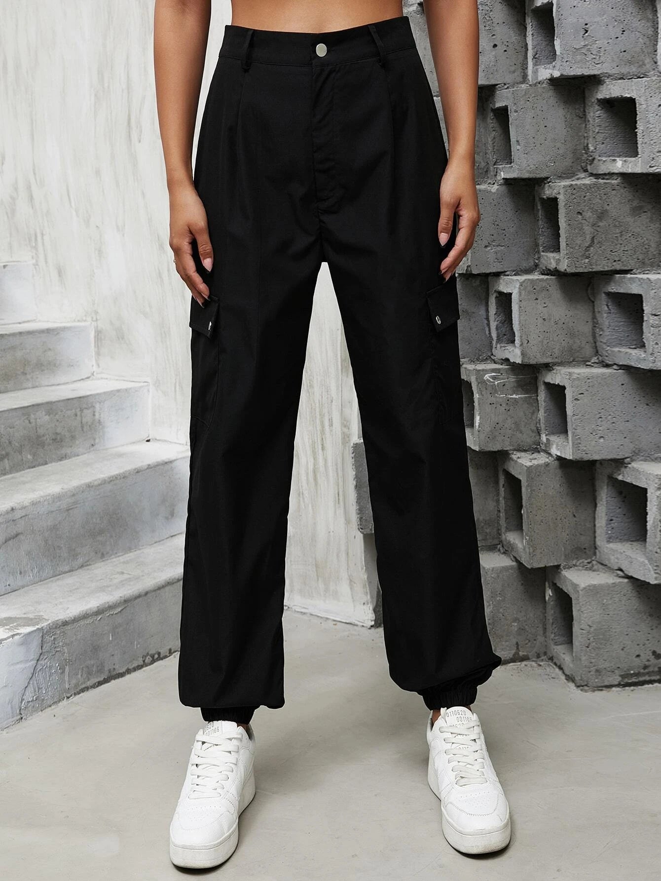 Looking for a comfortable and stylish pair of cargo pants? Look no further than our Solid Colored Pocket Cargo Pants! Made from polyester, these pants have a high waistline and a regular fit for a comfortable and flattering look. With a long length and non-stretch fabric, they're perfect for a casual day out or running errands. Plus, with handy pockets, you'll always have a place to keep your essentials close at hand.