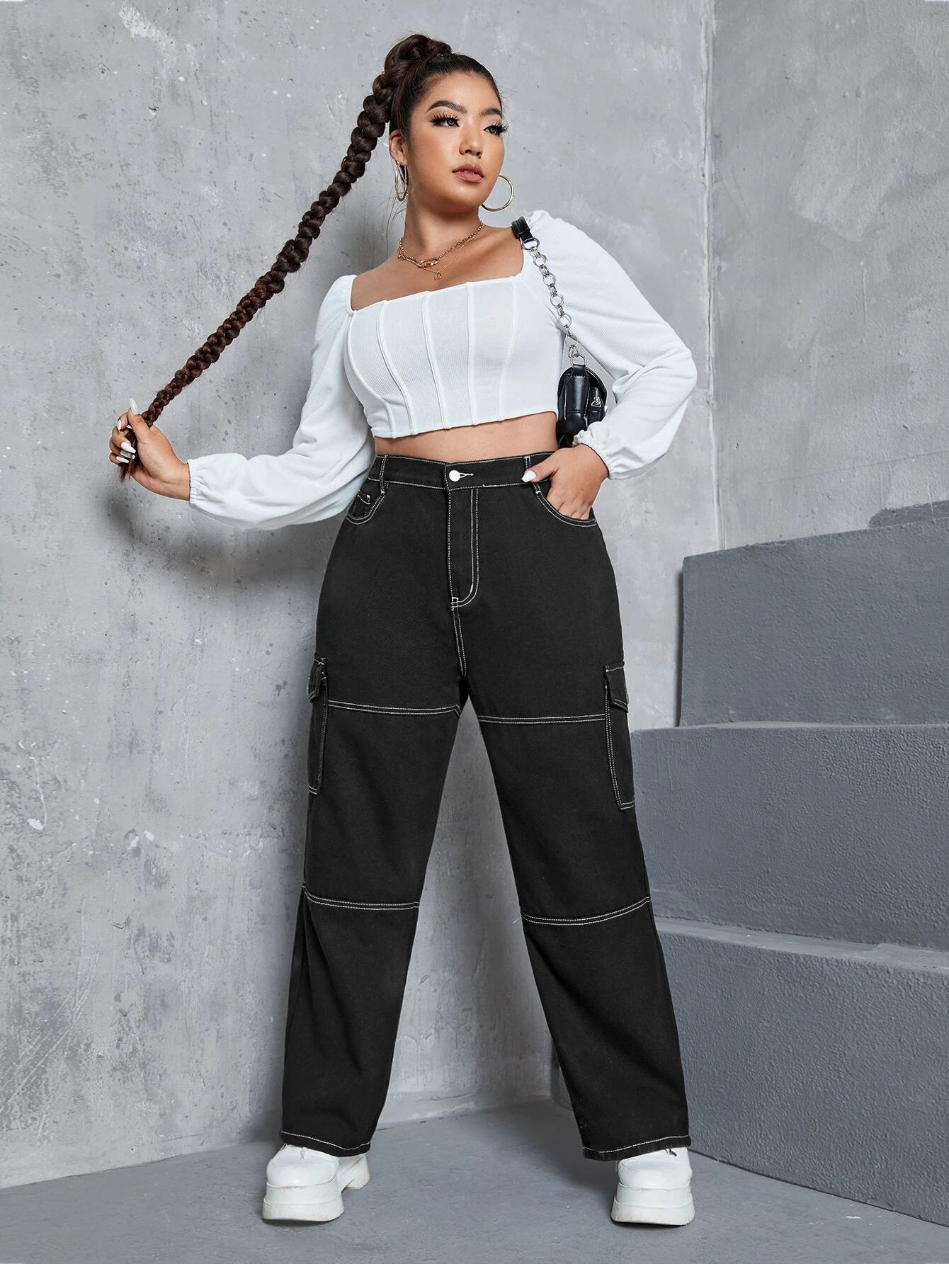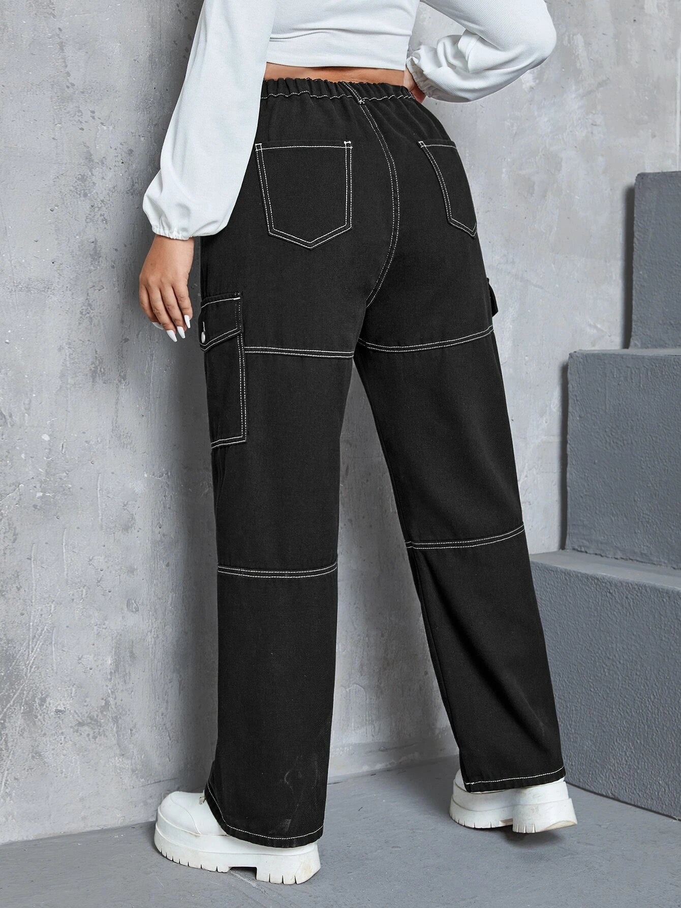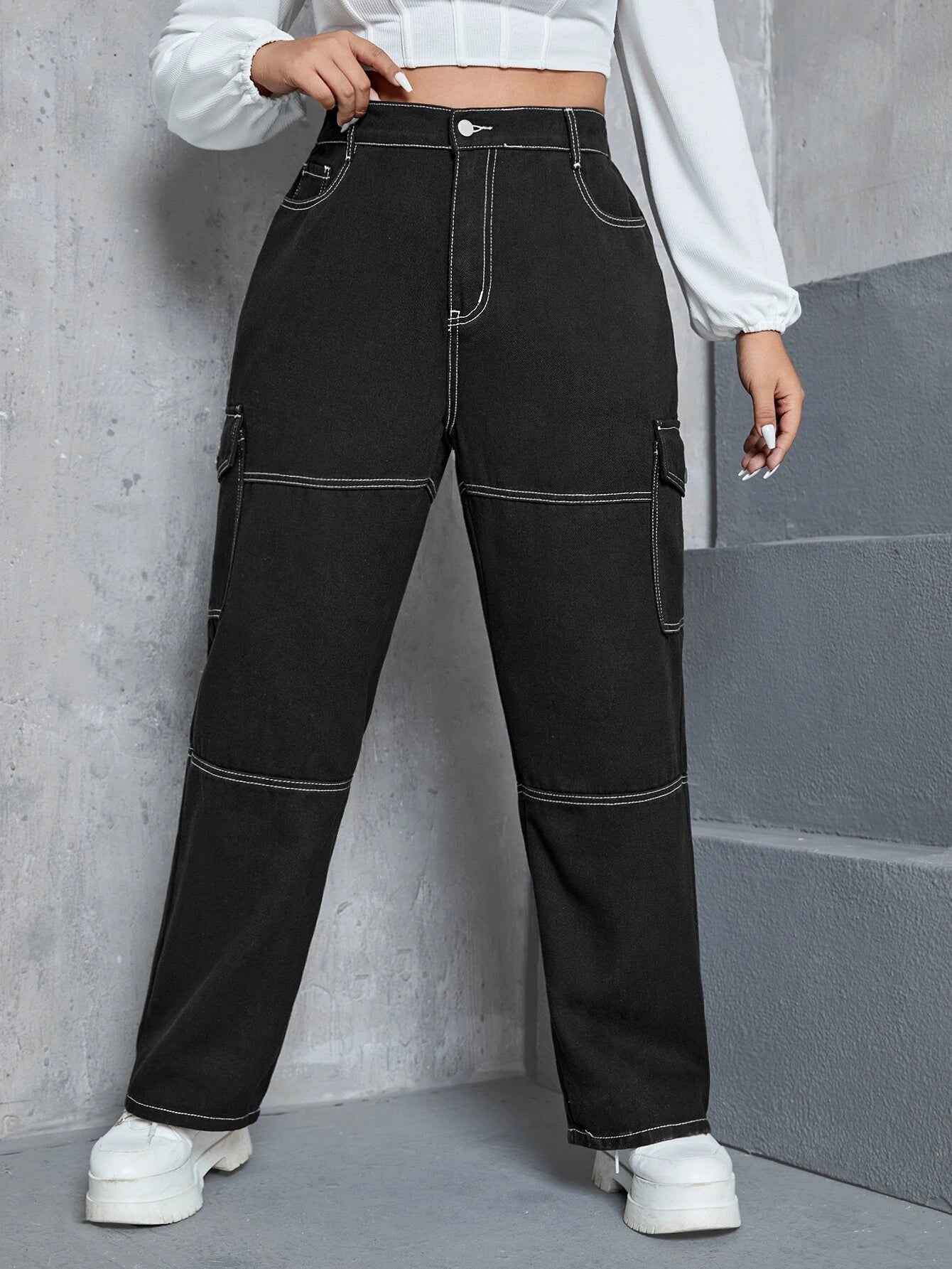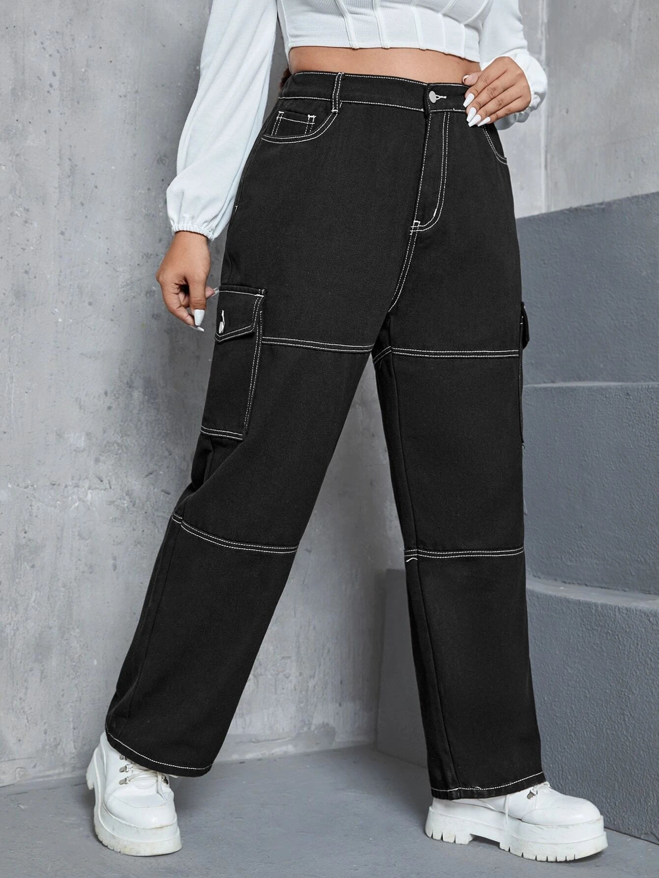 Embrace casual coolness with our Stitched Cargo Jeans With Flap Pockets. The high waist and lose fit provide ultimate comfort, while the non-stretch denim ensures durability. The contrasting binding adds a stylish touch, and the flap pockets offer functional storage.