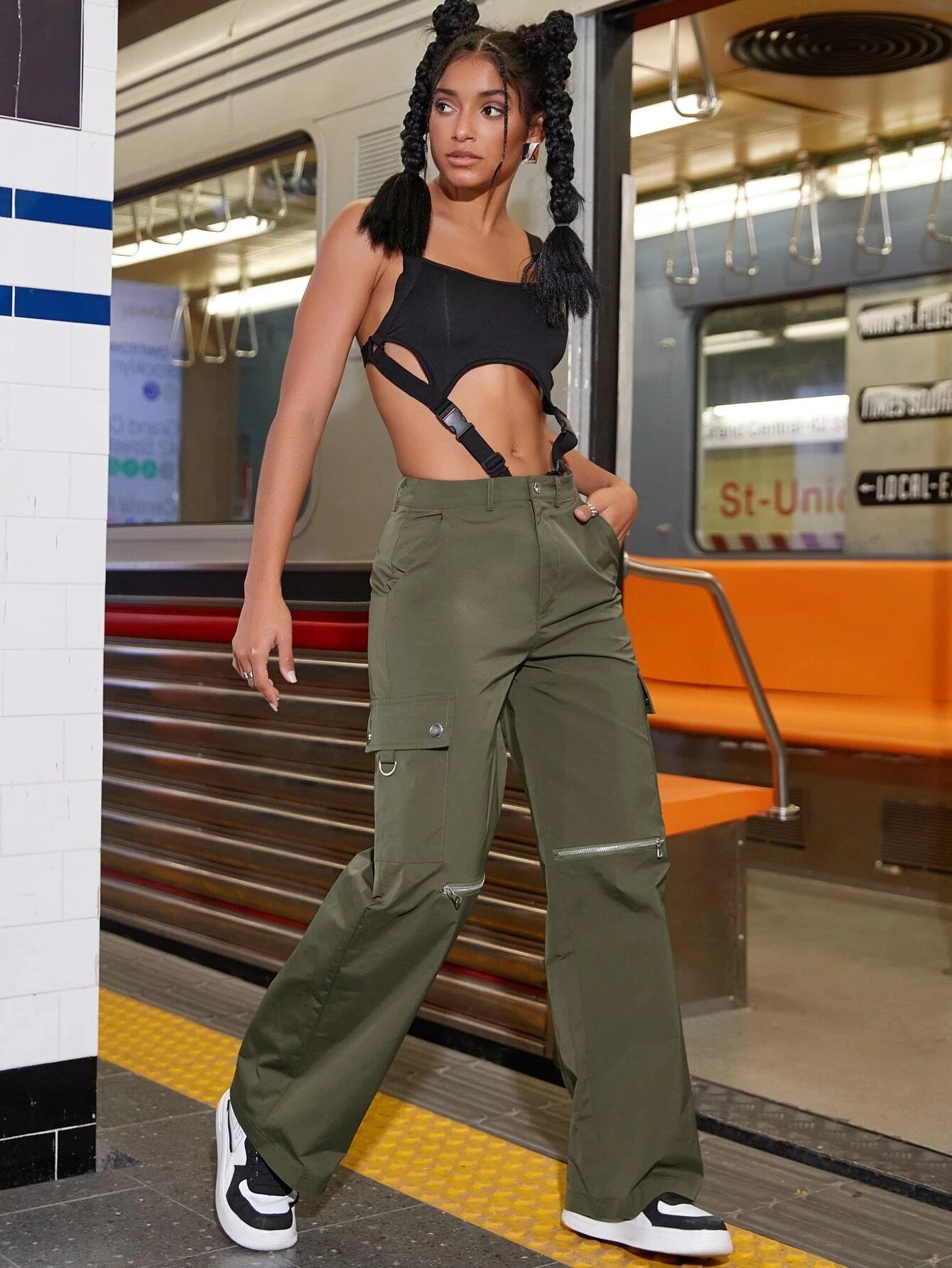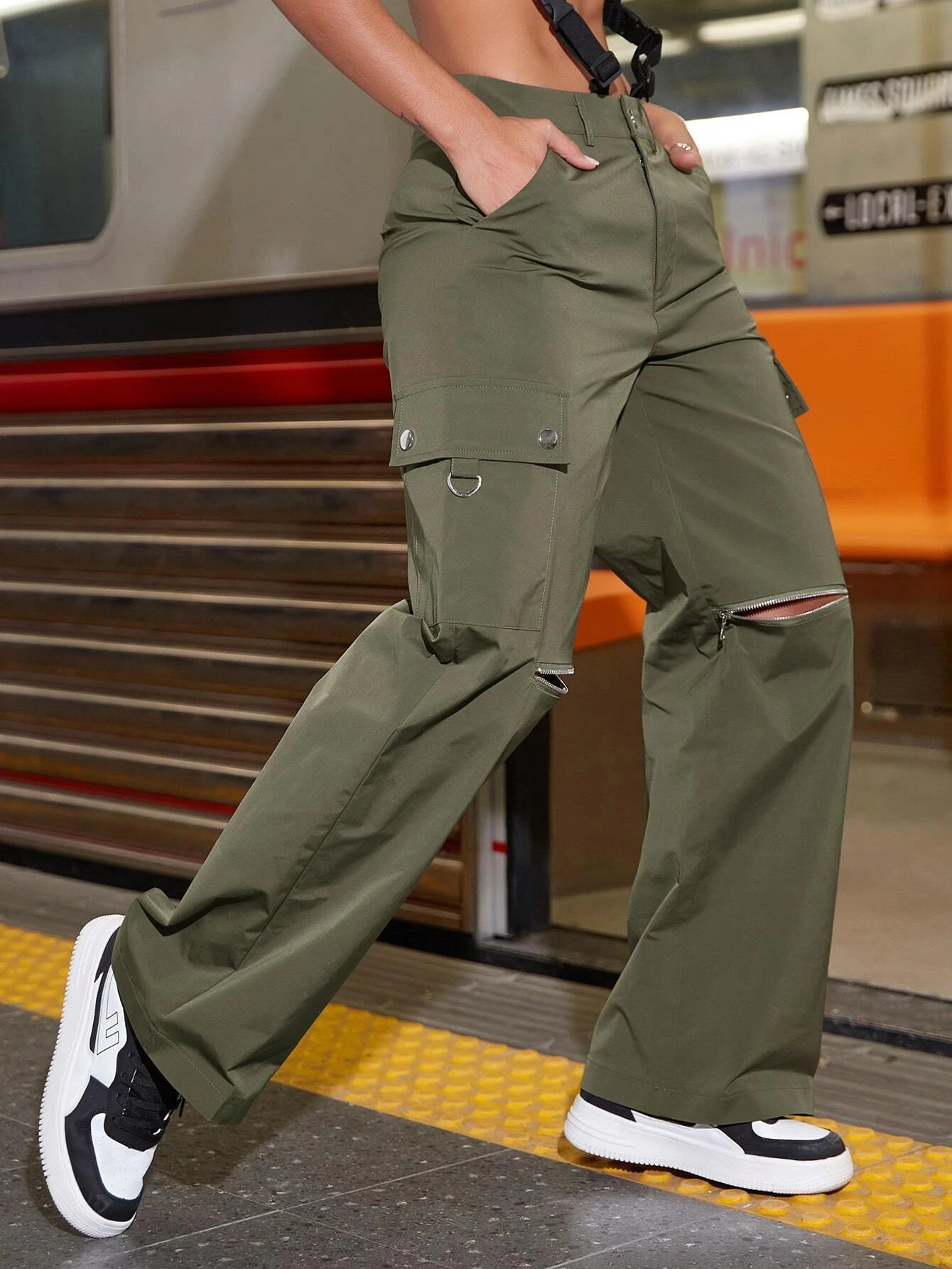 Step up your streetwear game with our Street Zipper Pocket Cargo Pants. These pants are designed with a natural waistline, a loose fit, and a non-stretch fabric that's made of polyester. The plain pattern of the pants is elevated with zipper pockets that add a touch of edginess to your look.