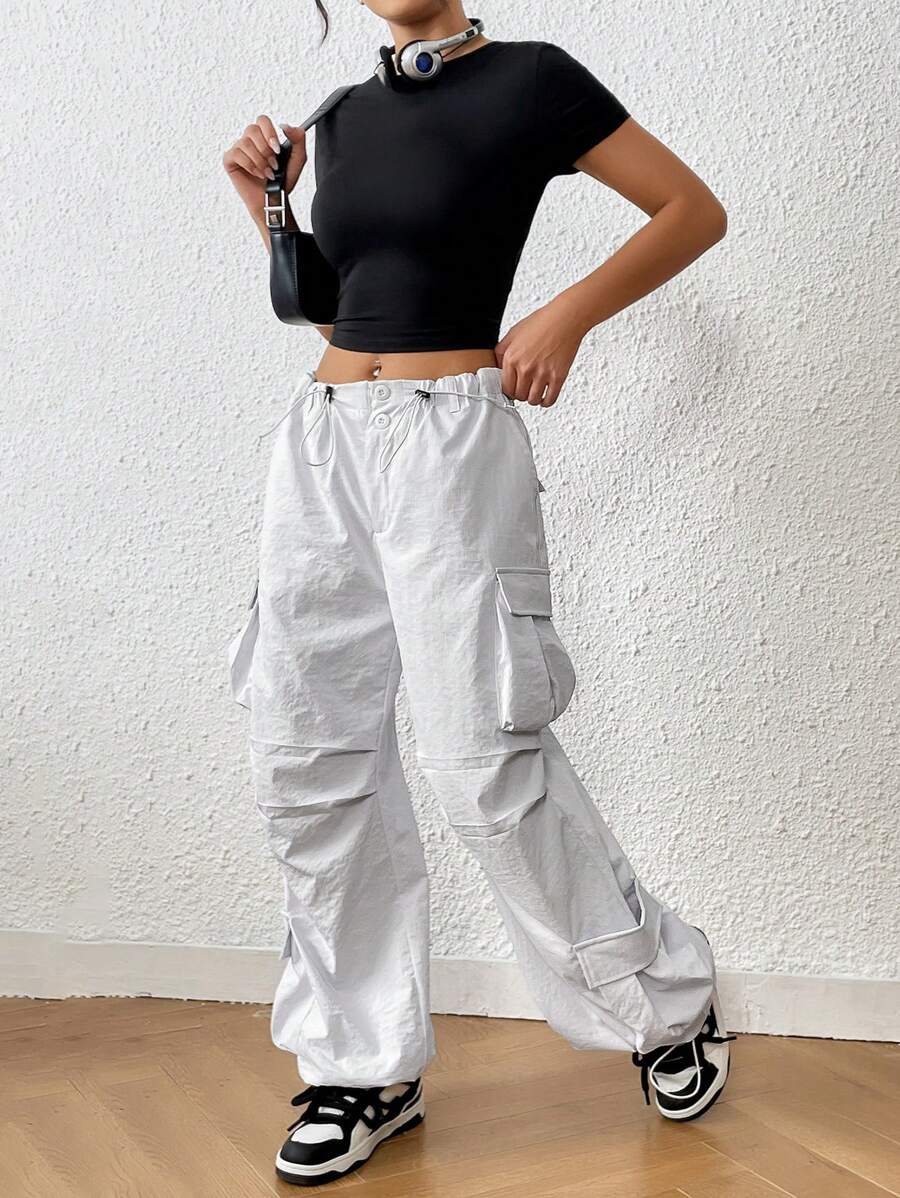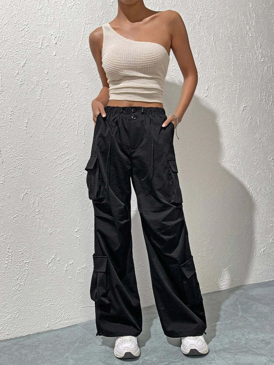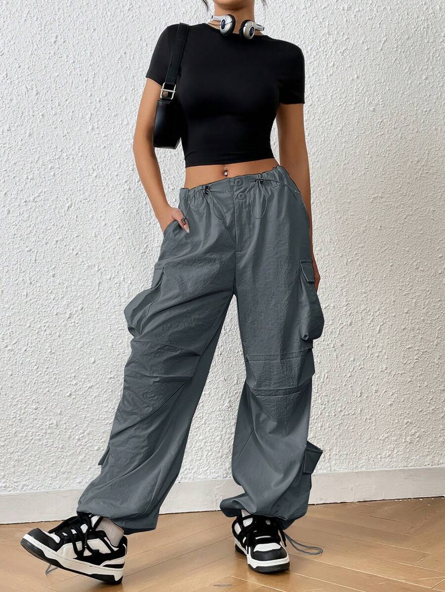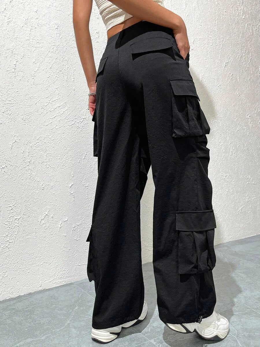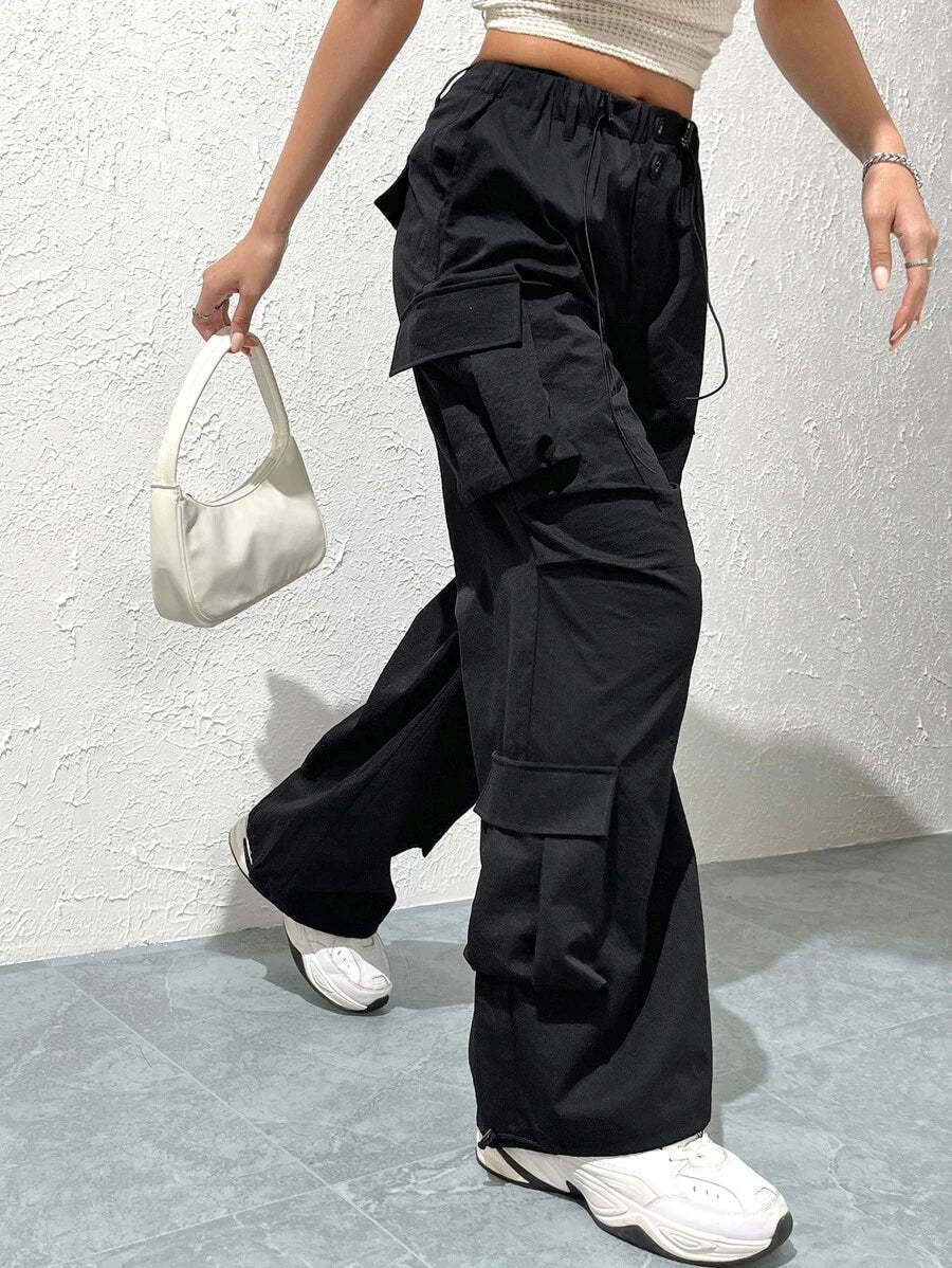 Whether you're trekking in the wilderness or just roaming through your neighborhood, you'll love the style and sheer convenience of these Trendy Solid Flap Side Pocket Cargo Pants! They feature a drawstring waist and pockets galore, with a polyester fabric that's perfect for any casual occasion. Time to turn up your fashion-savvy, adventurer.