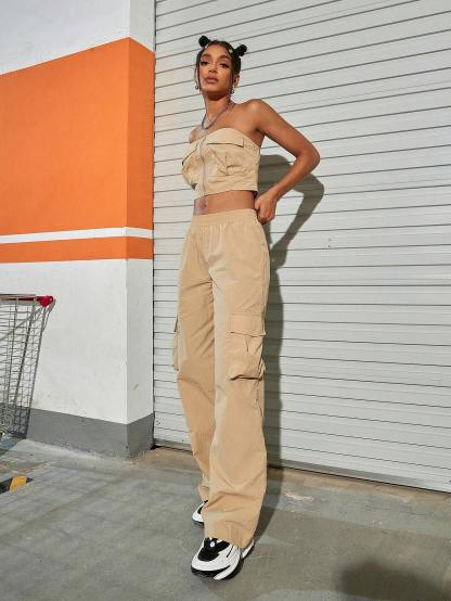 Our Tube Top And Flap Pocket Wide Leg Cargo Pants will give your everyday wardrobe a major upgrade. When it comes to style, these beige pants have you covered. With multiple pockets for pocket flaps, you’ll never be without a place to store your goodies. Whether you're on the go or kicking back, you'll be doing it in style. So step out boldly and watch those heads turn.