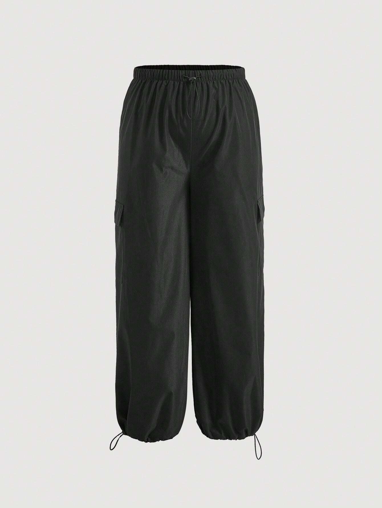 Unleash your inner adventurer with our UtilityStyleDrawstringCargoPants. These versatile pants combine style and practicality with their drop waist and regular fit. Crafted from a durable woven fabric, they feature a convenient drawstring and knot closure, along with ample pockets for your essentials.