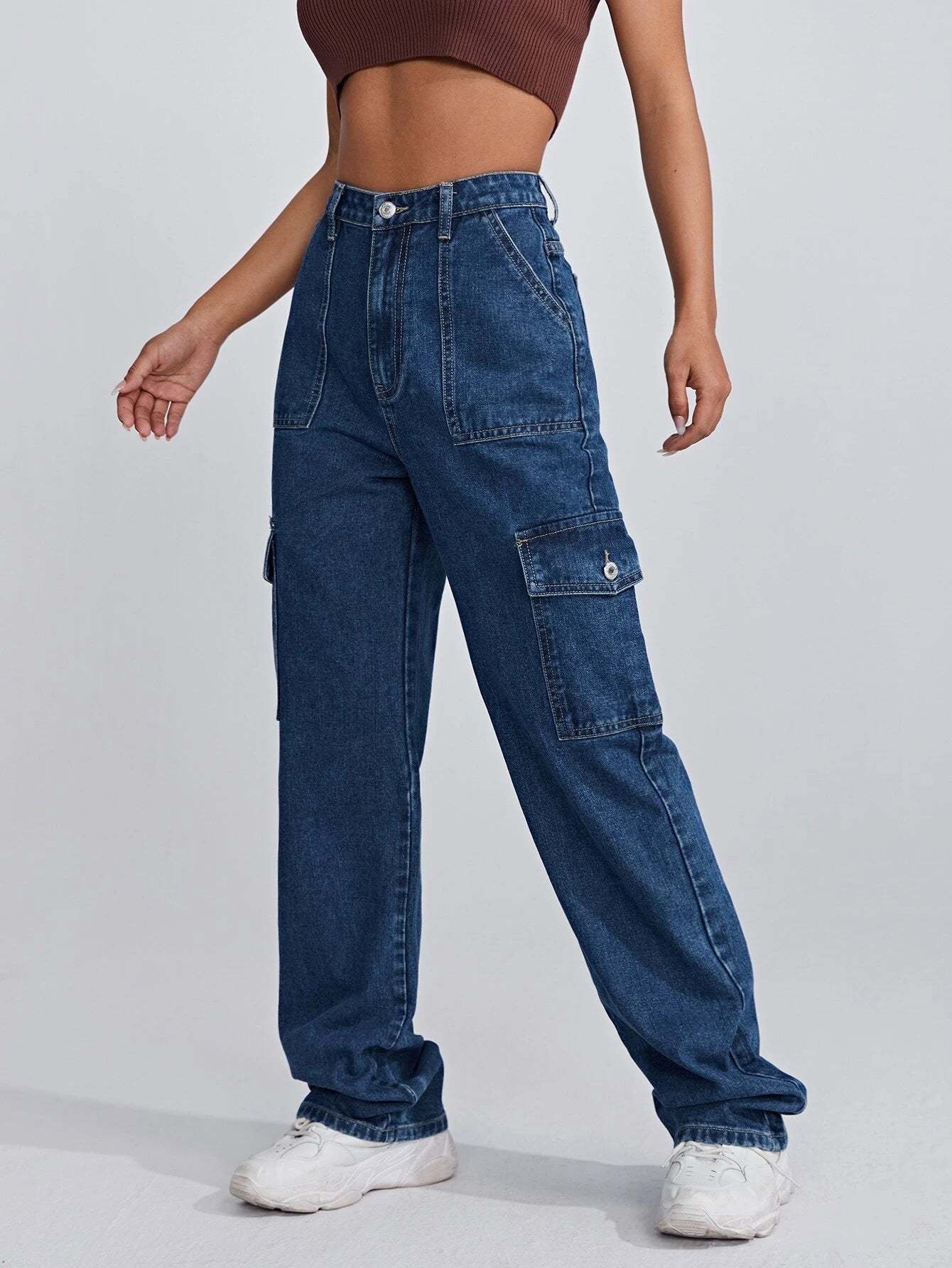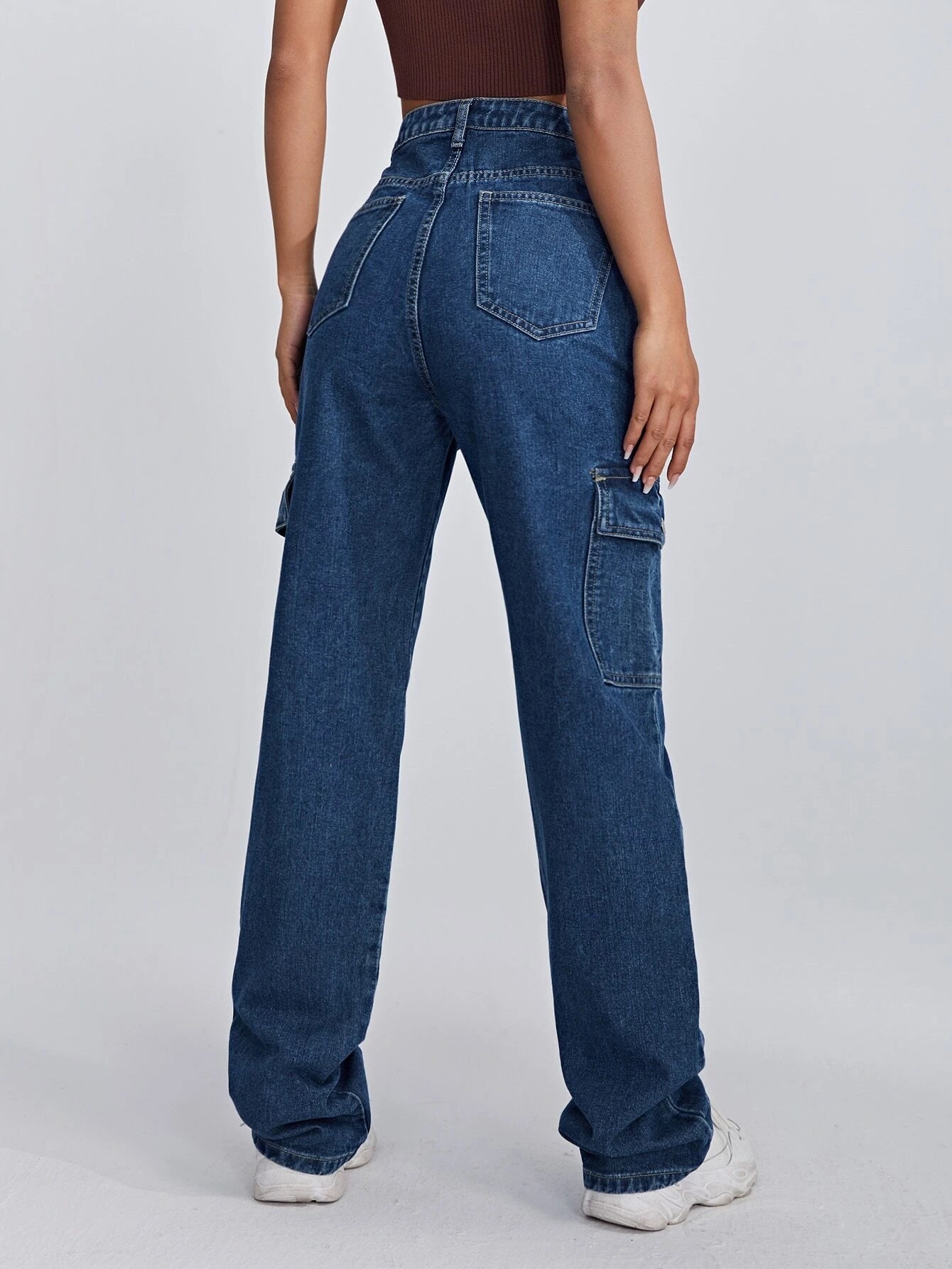Upgrade your denim collection with these Waist Flap Pocket Side Jeans. These jeans feature flap pockets on the waistband, adding a unique and stylish detail to the classic jeans design. The side pockets offer functional storage space, while the blue color design adds versatility. Whether you pair them with a casual tee or dress them up with a blouse, these waist flap pocket side jeans will give your outfit a fashionable edge.