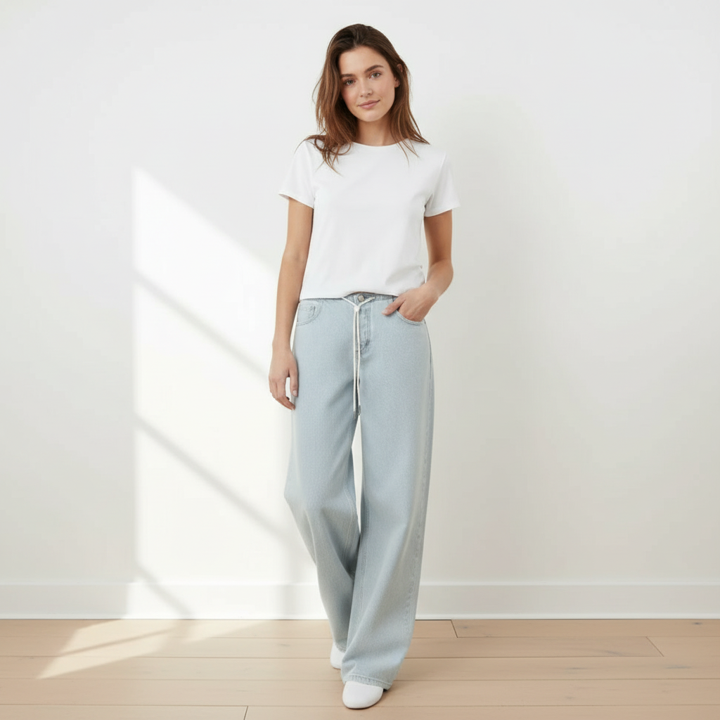The denim structure supports consistent form while helping the jeans maintain their wide outline over time. The stitched detailing and classic closure layout add a clean finish that works well for daily wear and repeated outfit styling.