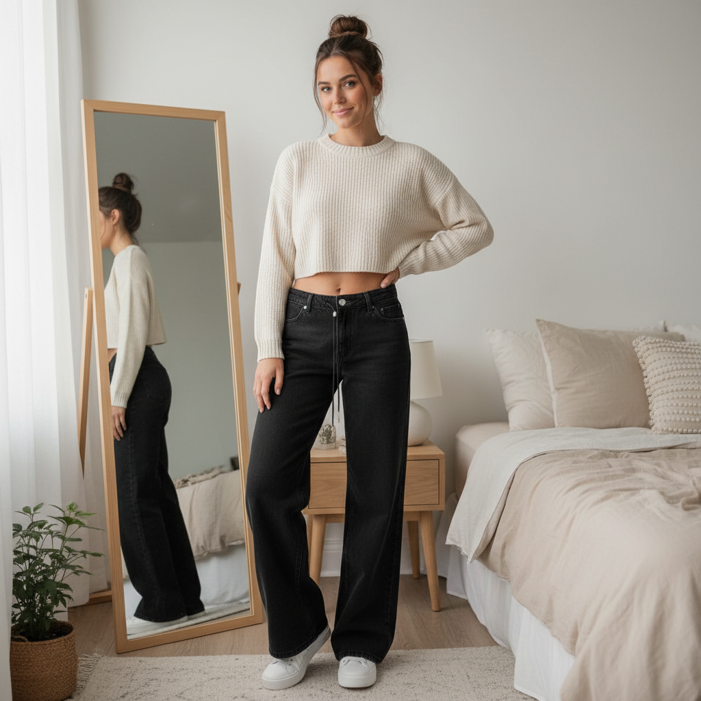 These Effortless Vintage Style Low Rise Wide Jeans are designed to support everyday styling with a clean wide silhouette and a vintage-inspired layout. The low-rise fit and full-length design create a structured outline that works well across casual settings while keeping outfit styling simple and consistent.