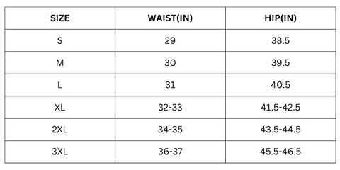 Size Chart (Inches):