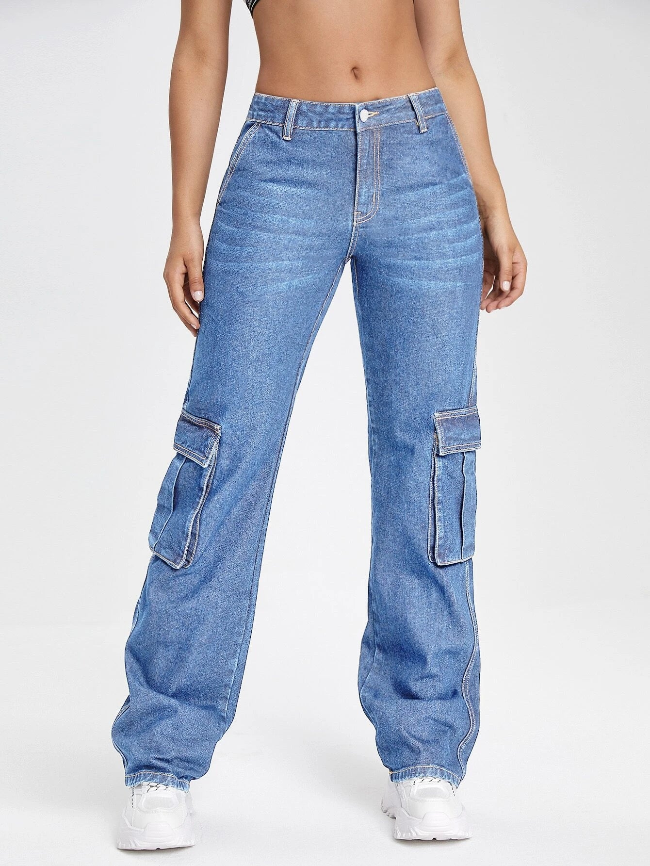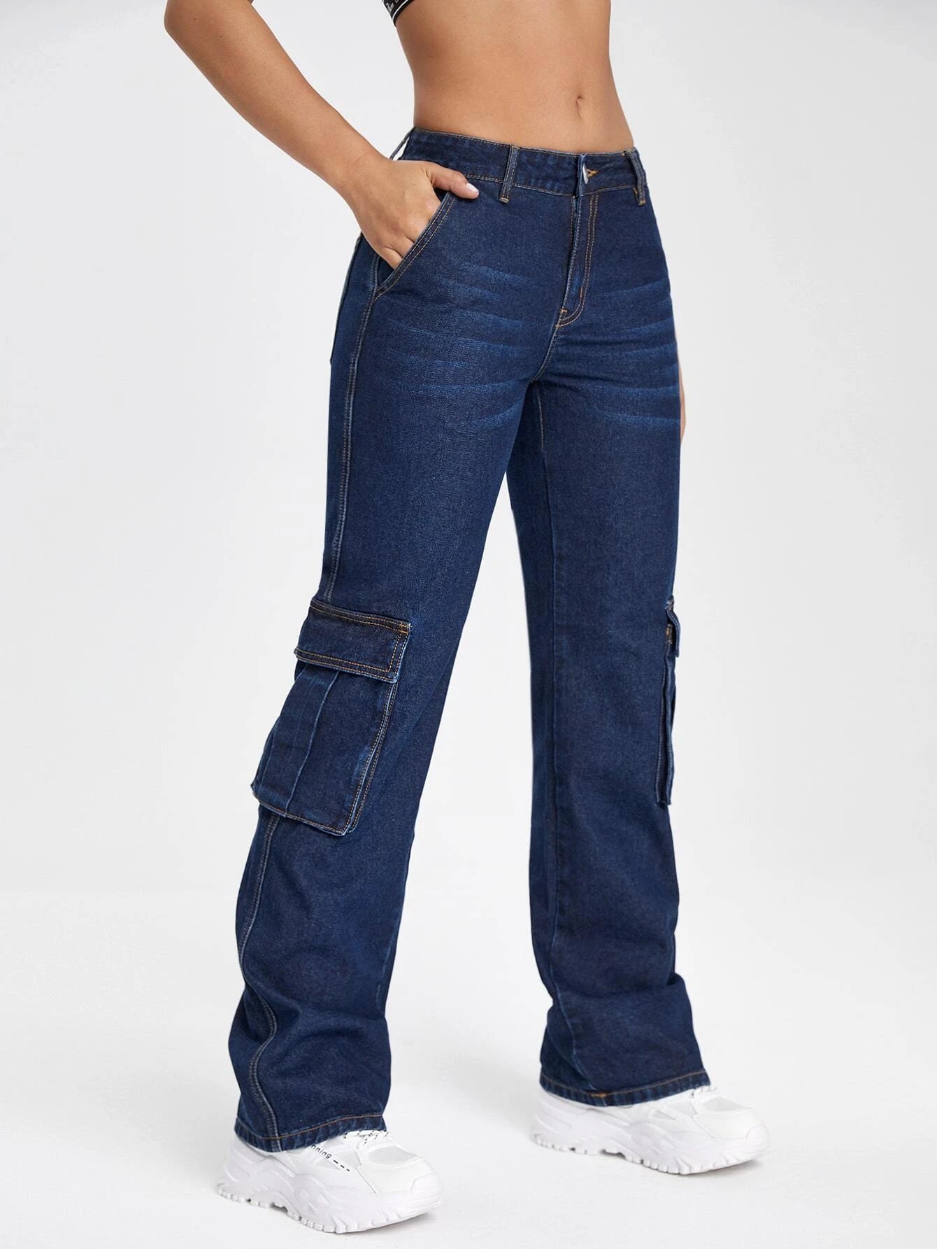 Introducing the Zipper Fly Flap Pocket Cargo Jeans, a fashion-forward marvel that seamlessly blends style, functionality, and versatility. These jeans are a contemporary twist on the classic cargo pants, designed to elevate your fashion game while offering the utmost convenience and practicality. It not only enhances the overall aesthetic appeal but also offers convenience for those on the go.